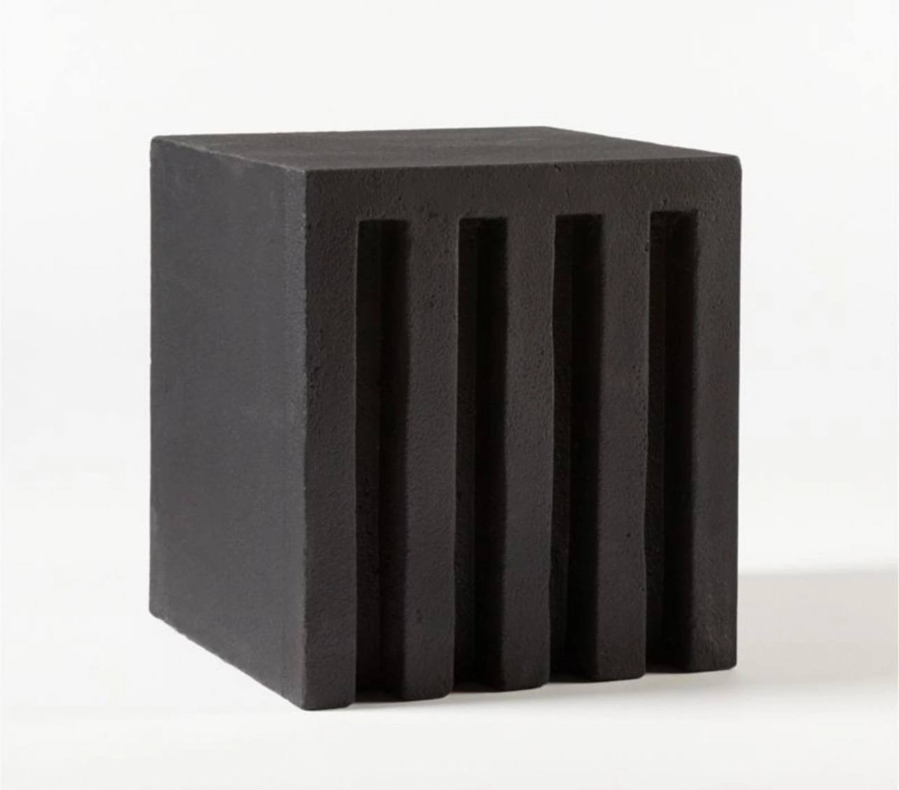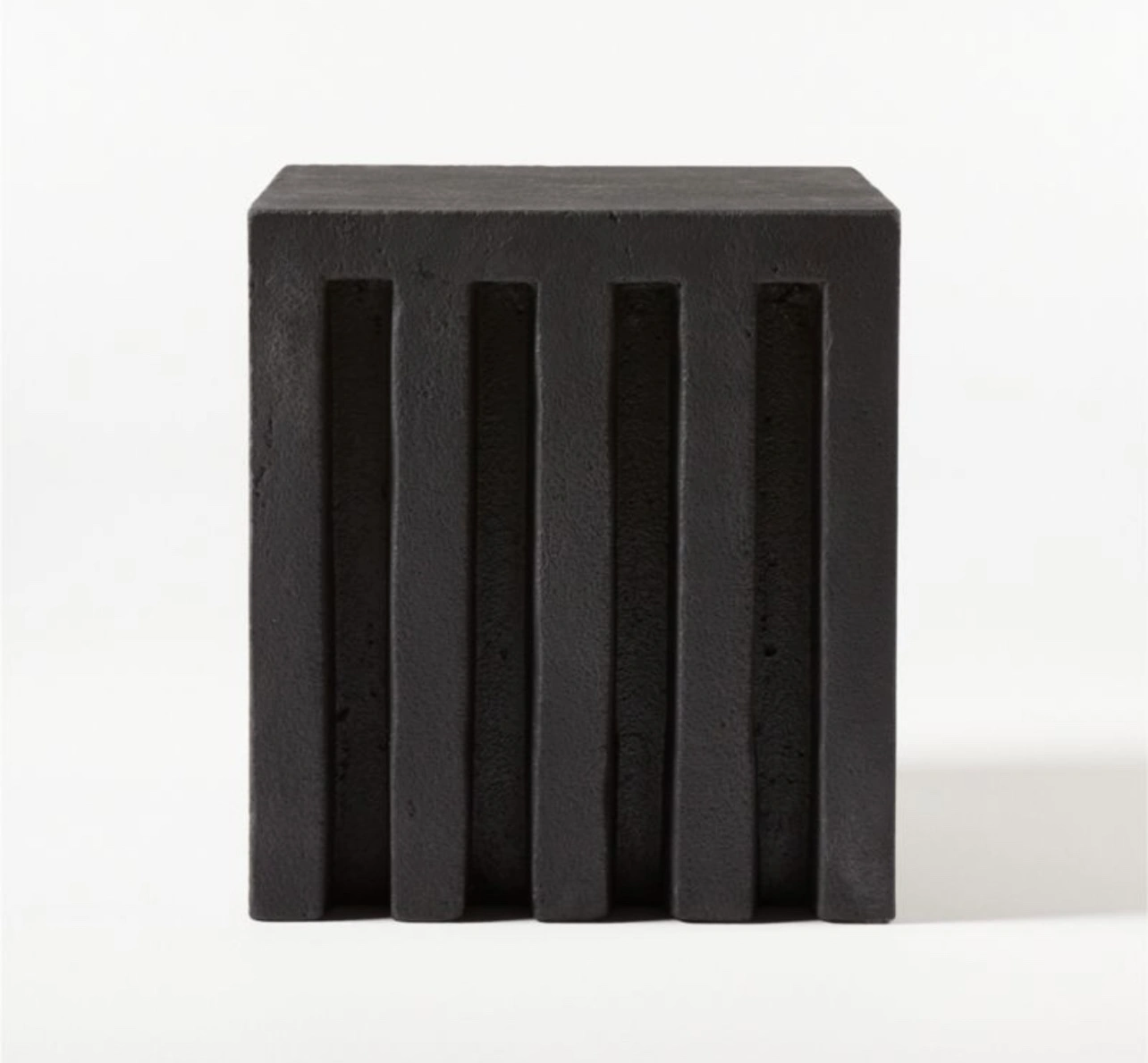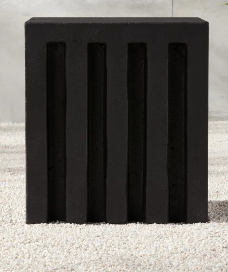 Black/charcoal grey cb2 side tables. Made from concrete and fibreglass. Indoor or outdoor. Good condition. Some discolouration. Need two strong people to load these.