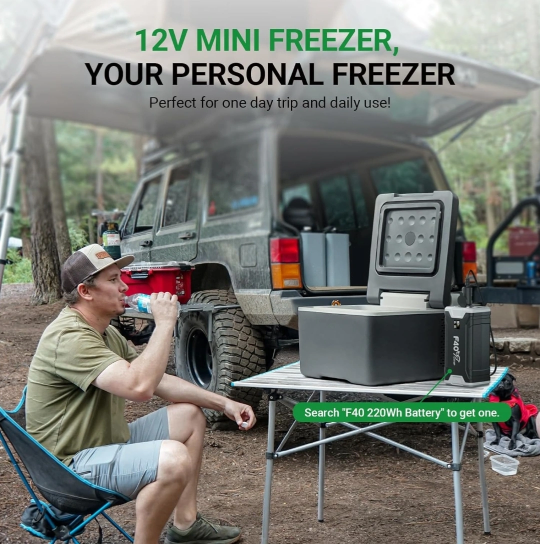 【APP Control】F40C4TMP portable car freezer supports APP or manual control, you can set the temperature remotely within 32 ft. The intelligent design helps you control and monitor the temperature of the camping refrigerator remotely, whether it is from the front seat of your vehicle or in the bed.