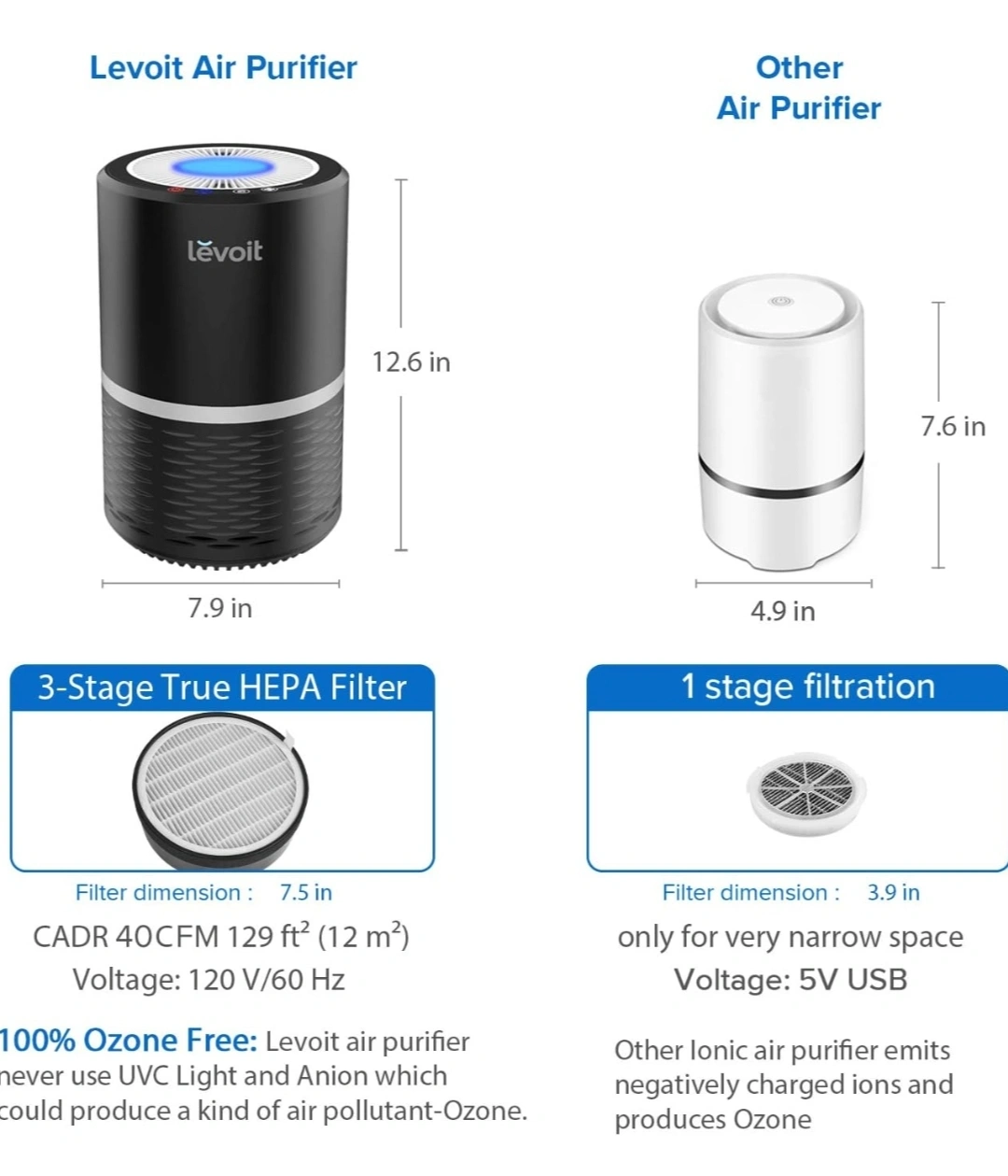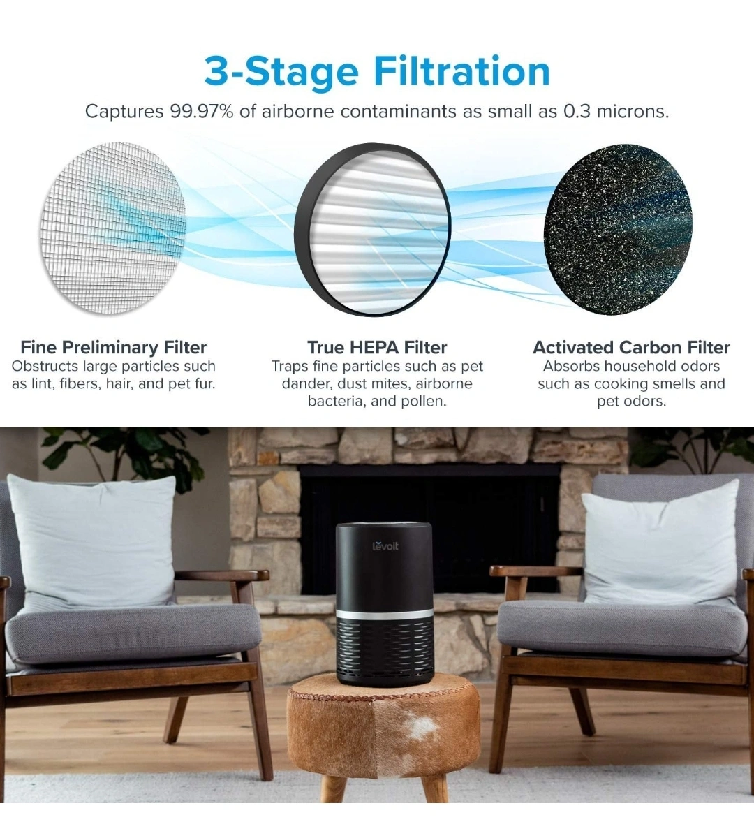 3 Speed Settings & High-Efficiency Air Purifier: Choose from low, medium, or high fan speed settings to meet different air conditions; Circulating room air over 4 times per hour to achieve rapid purification. Unique size and contemporary design make Levoit air purifier suitable for small, medium rooms, office and dorm, serving you both for practical air purifier and lovely decor.