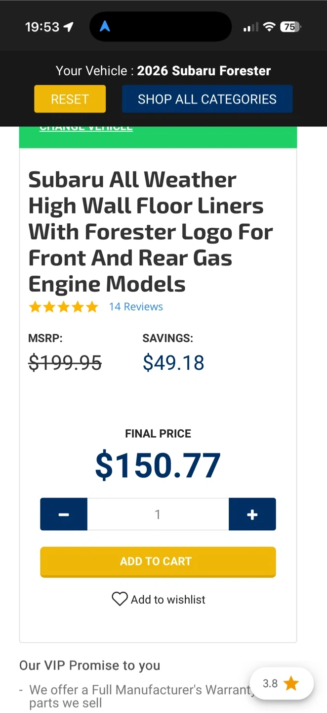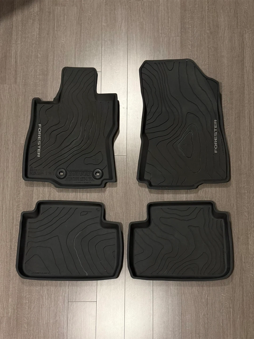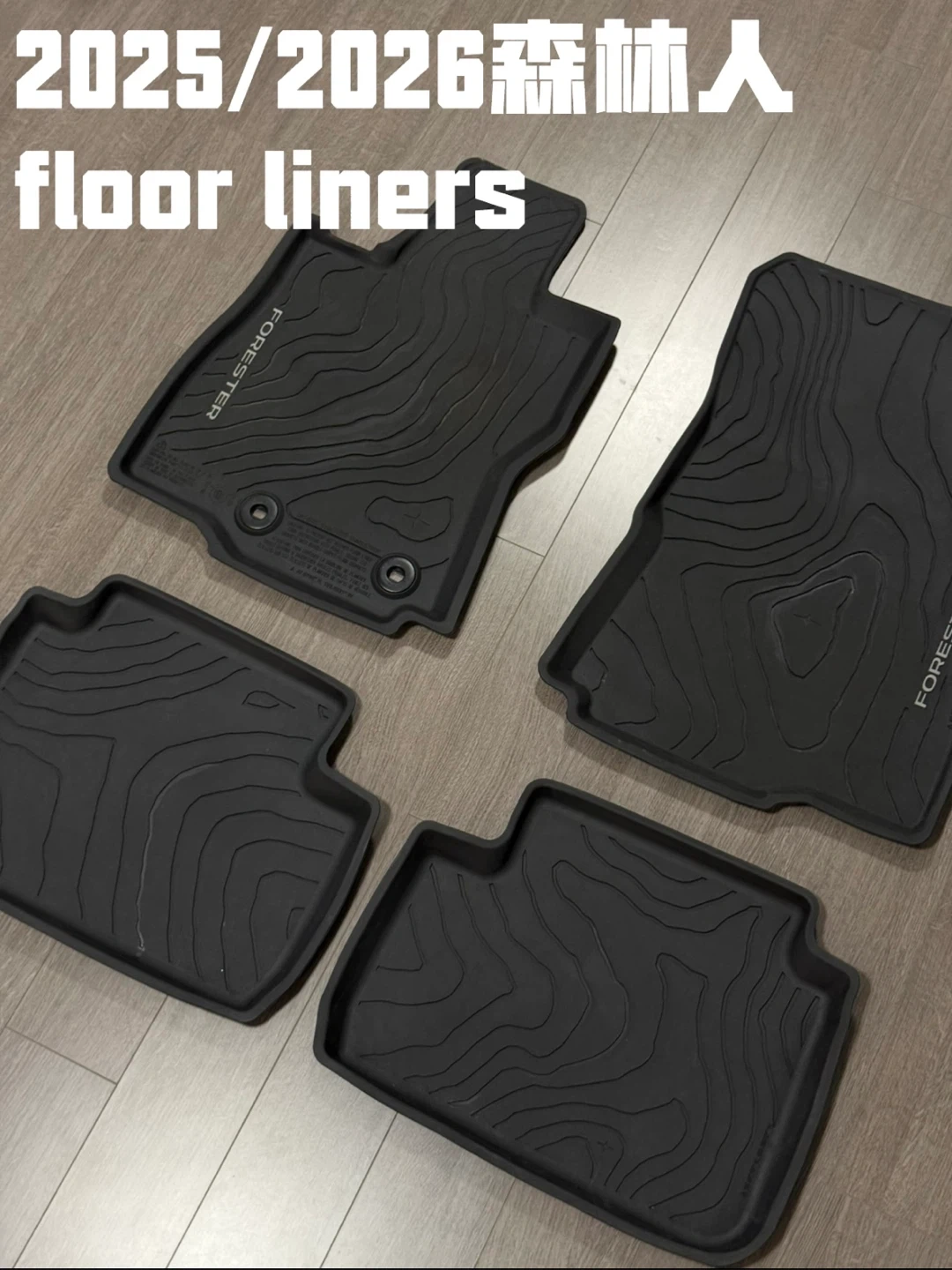 This is a set of 4 all-weather floor liners for a Subaru Forester 2025/2026. They're made of TPE material and designed to protect your vehicle's interior from dirt and moisture. They fit front and rear gas engine models.