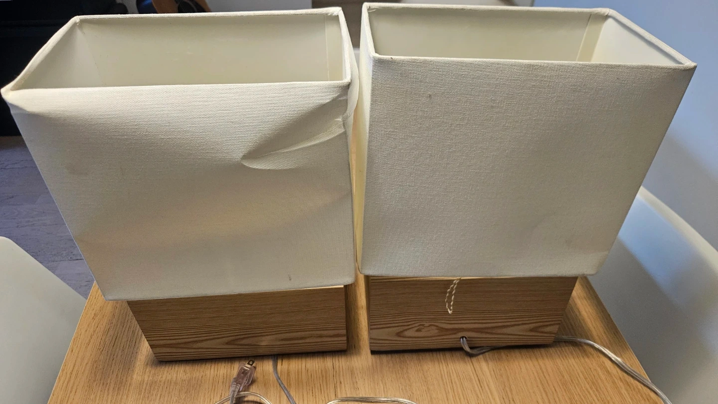 Selling a pair of lamps with a square, off-white shade and a wood base. They would look great in any room!