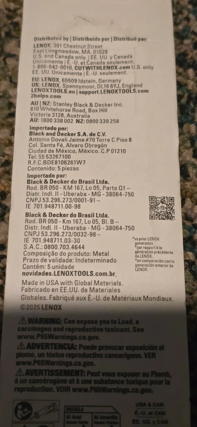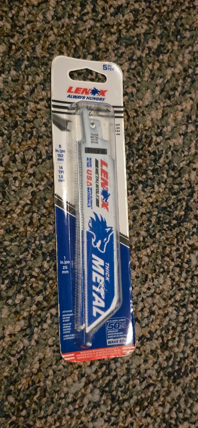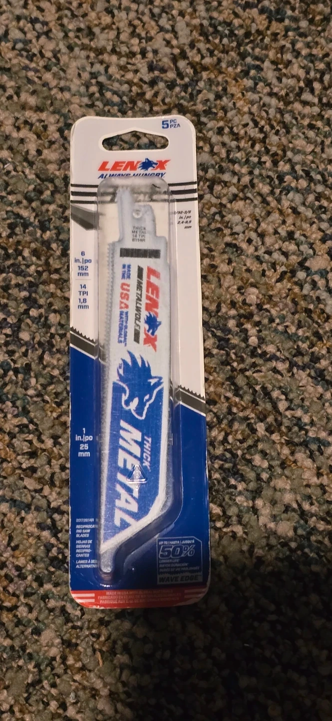 This is a 5-piece set of Lenox Metal reciprocating saw blades. They're designed for cutting metal and feature a wave edge for longer life. Made in USA with global materials.