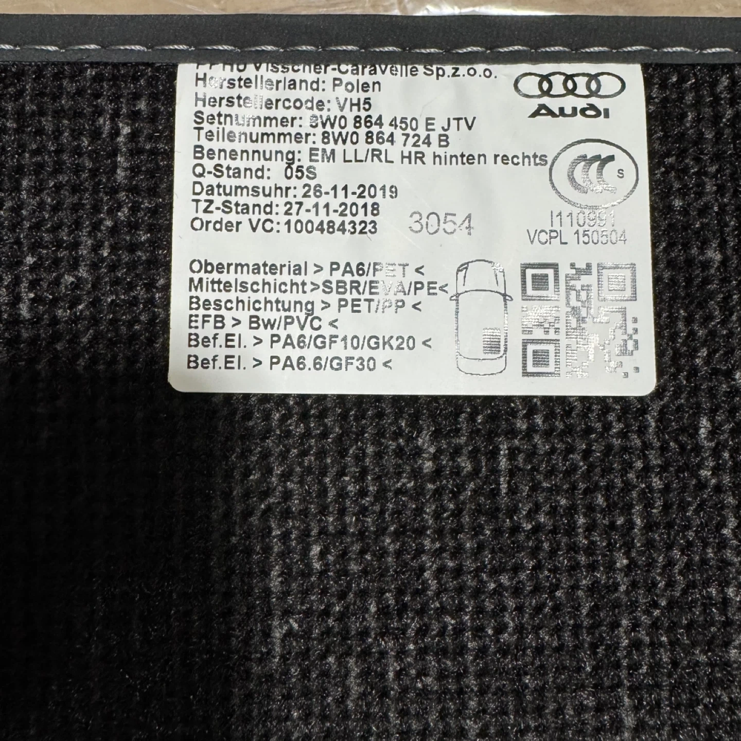 Set of dark grey/black OEM carpet floor mats for an Audi S5/A5. These are genuine Audi mats that are brand new with tags ; originally for 2020 Audi S5 Sportback. Includes front and rear mats.