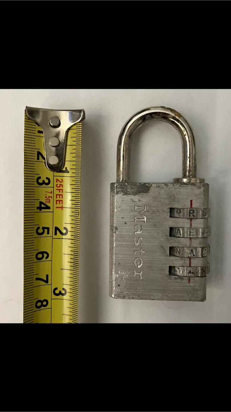 This is a Master brand combination lock. It's a 4-digit combination lock. The lock body is about 2.5 inches tall