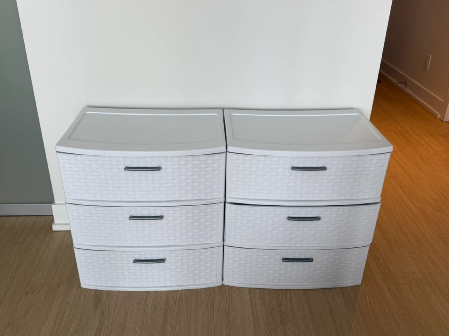 Selling a set of 2 Sterilite 3-Drawer Wide Weave Towers.