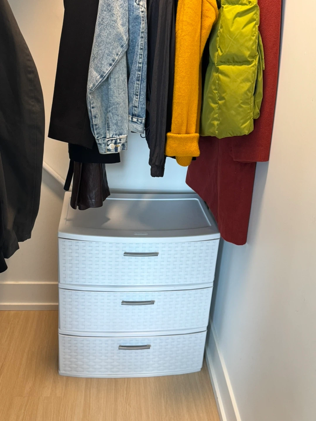 These units are the perfect height to fit under your hanging clothes in a walk-in closet, helping you maximize your storage space.