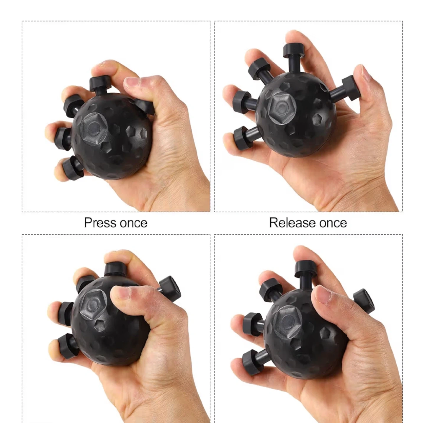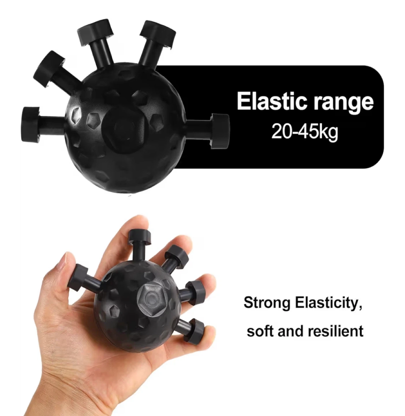 This black ball is designed to improve grip strength and relieve stress. It has an elastic range of 20-45kg and is soft and resilient. It's useful for people who type, play piano, or do detailed work.