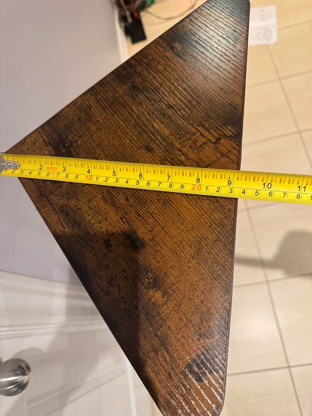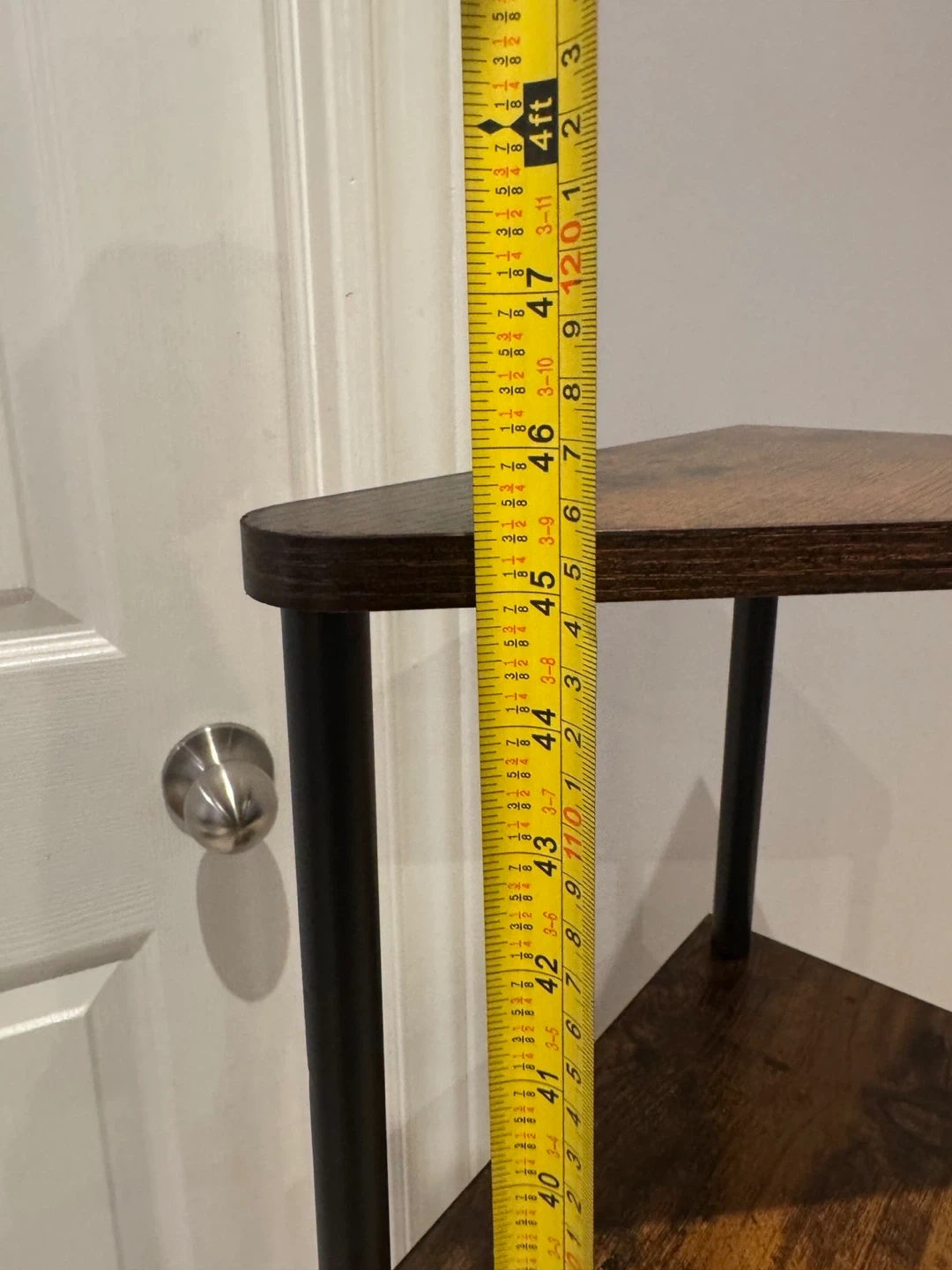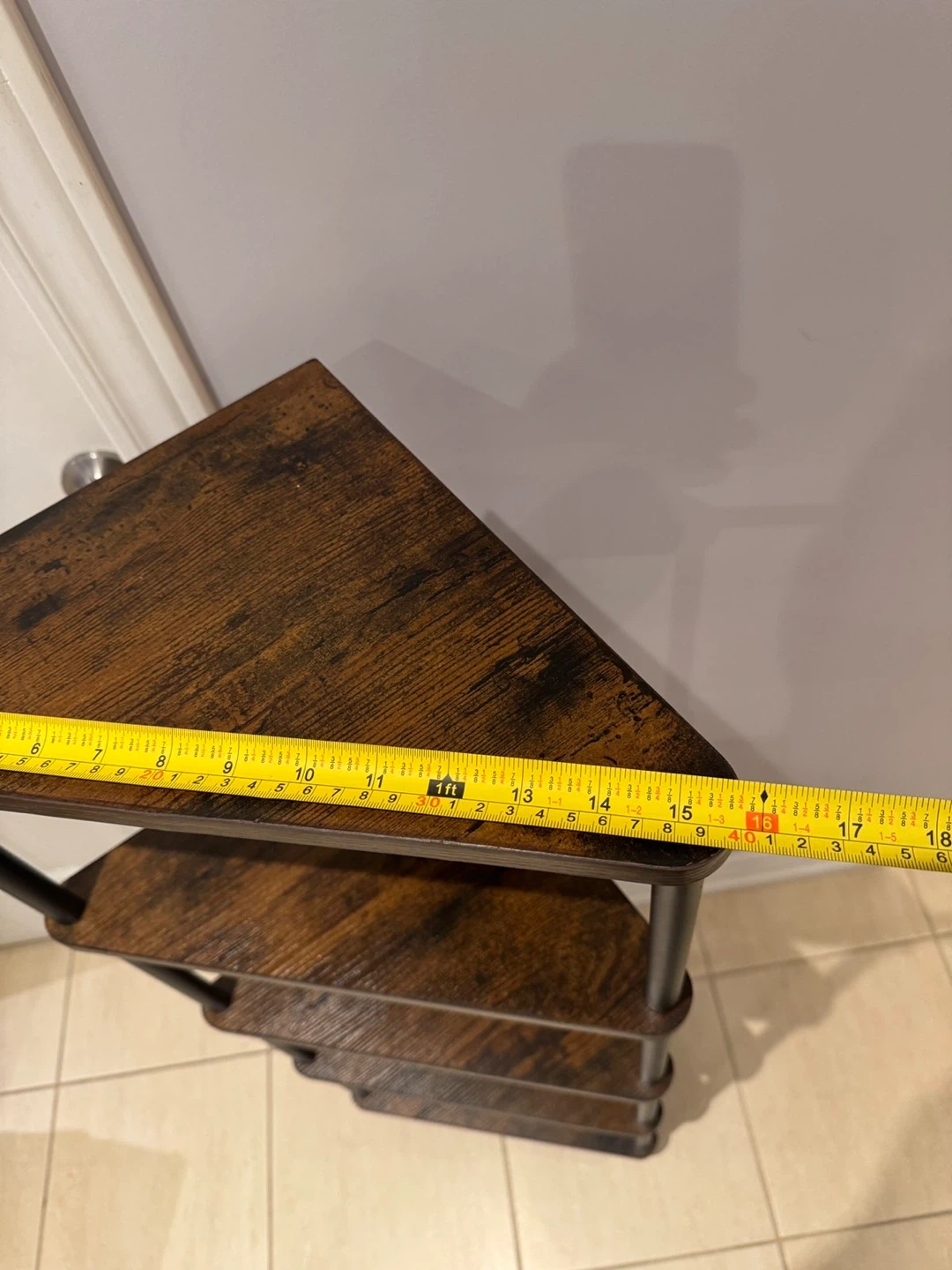 This 5-tier corner shelf unit offers ample storage. It's constructed with a rustic brown finish and black metal legs. This unit is great for maximizing corner space in any room!