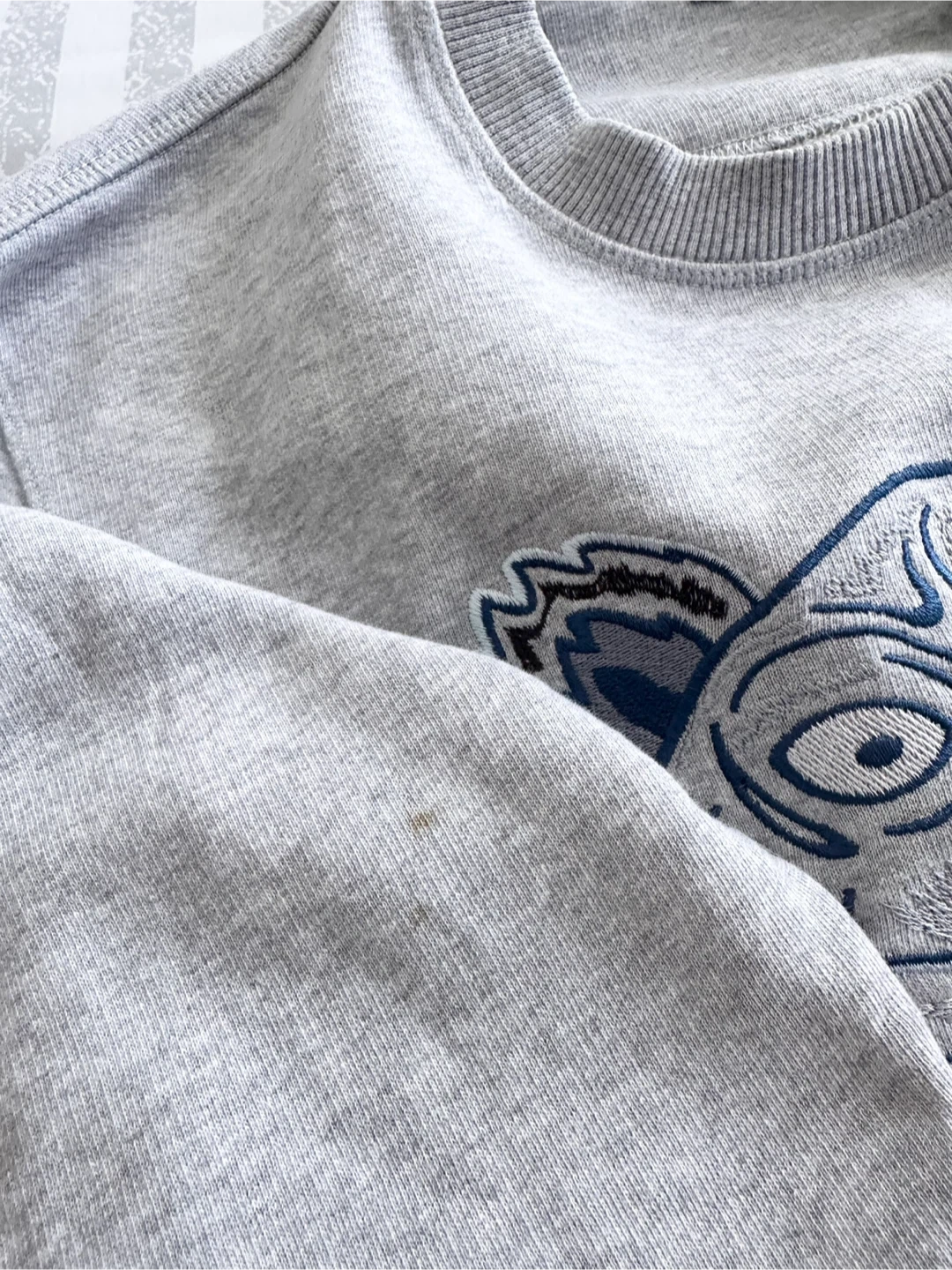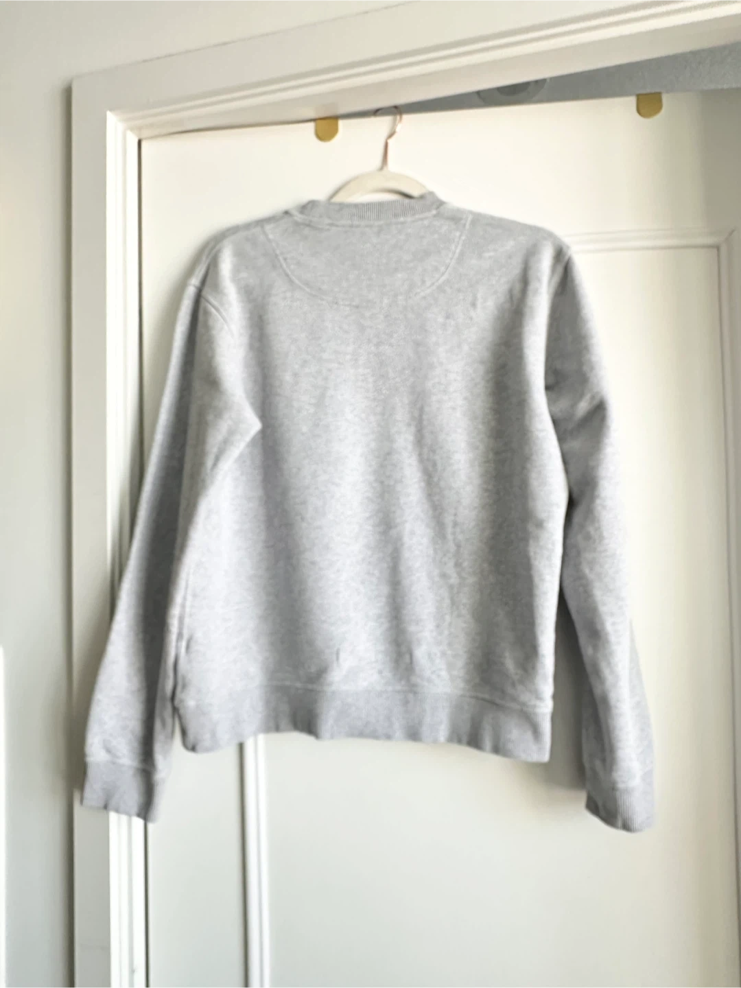 This Kenzo Paris sweatshirt is grey with the iconic tiger graphic. It's a size small. There's a small mark on the sleeve.
