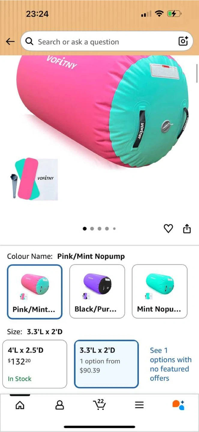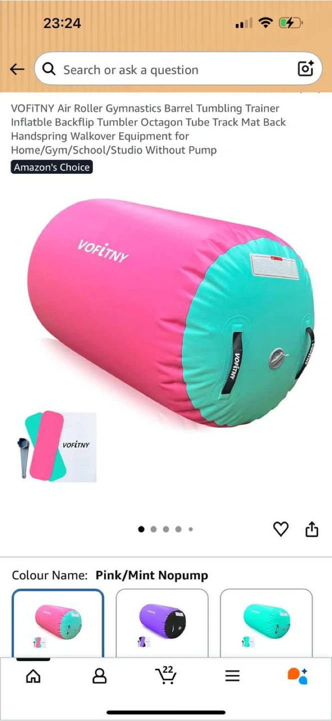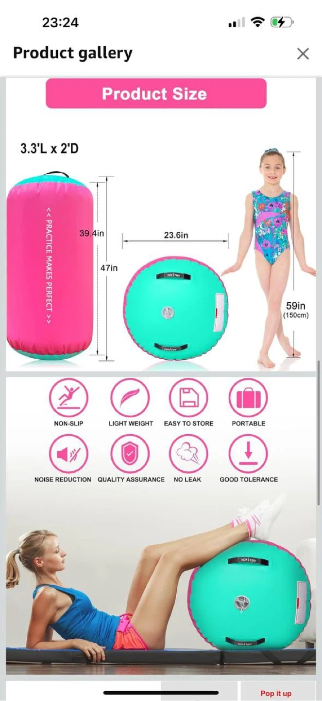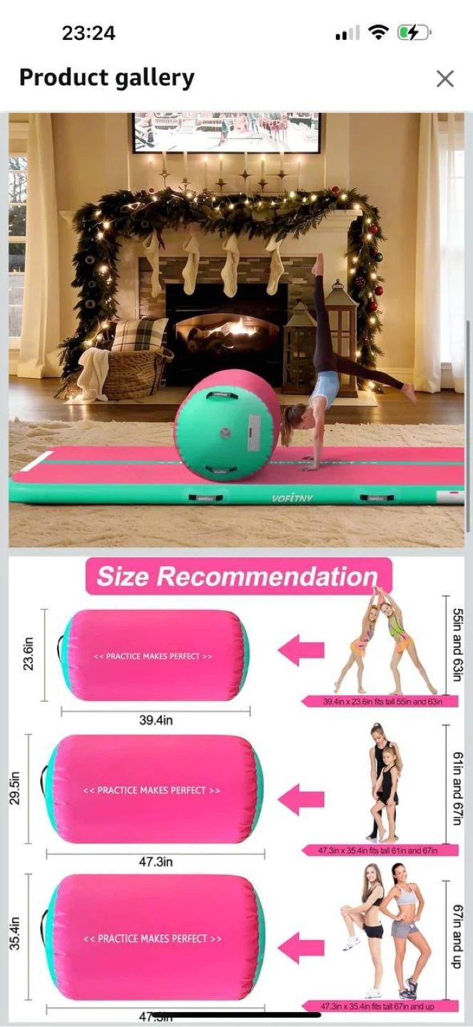 🤸♀️ VOFiTNY Air Roller Gymnastics Barrel 3.3’ x 2’ – Pink/Mint – NEW (No Box) 🤸♀️