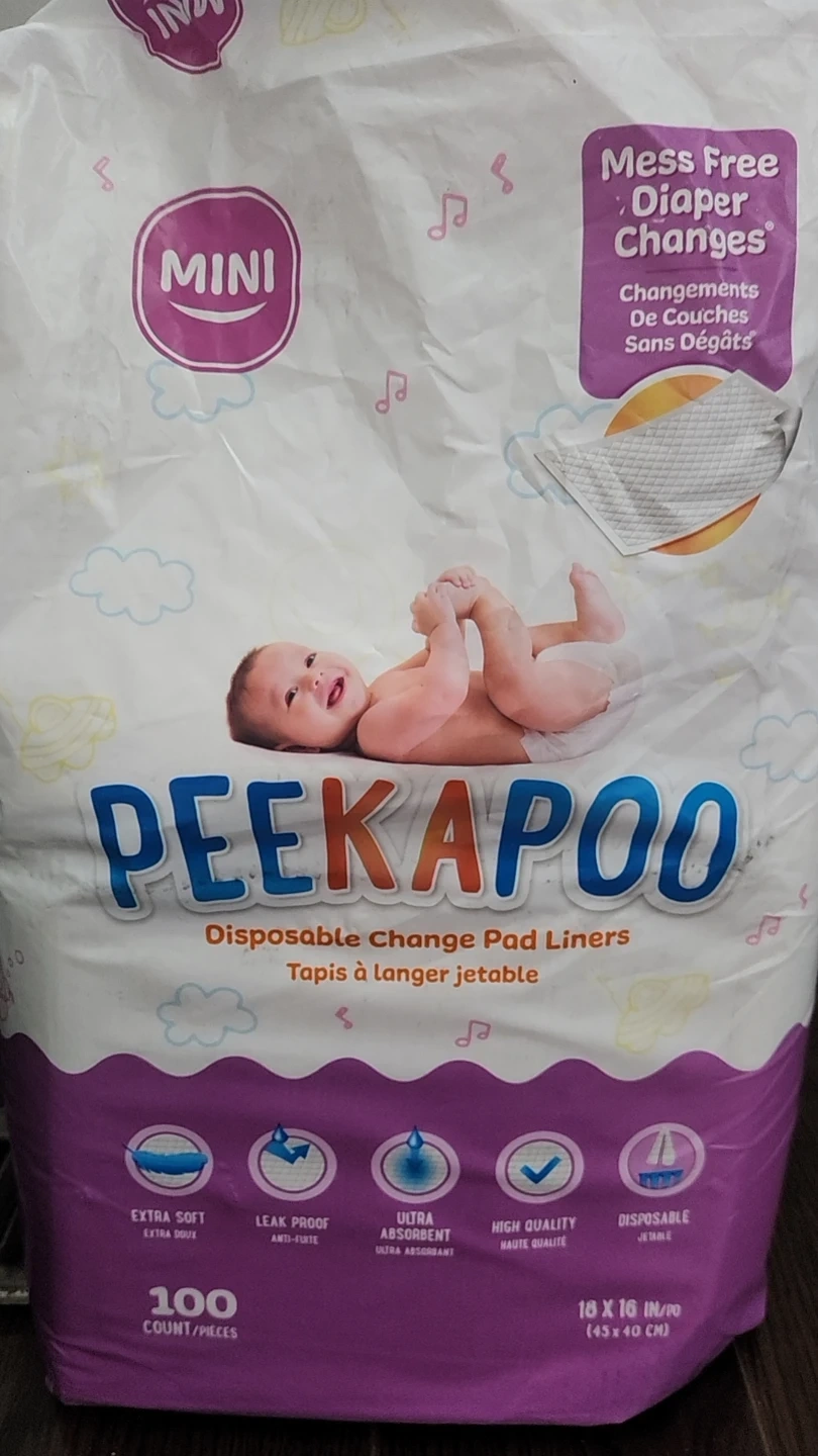 Peekapoo Mini disposable changing pad liners They're extra soft, leak-proof, and ultra-absorbent. These high-quality liners measure 18 x 16 inches. Great for on-the-go diaper changes!
