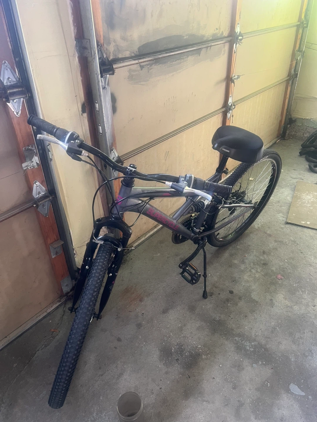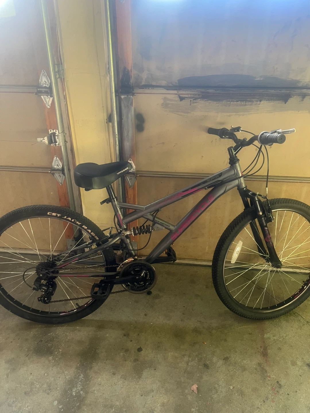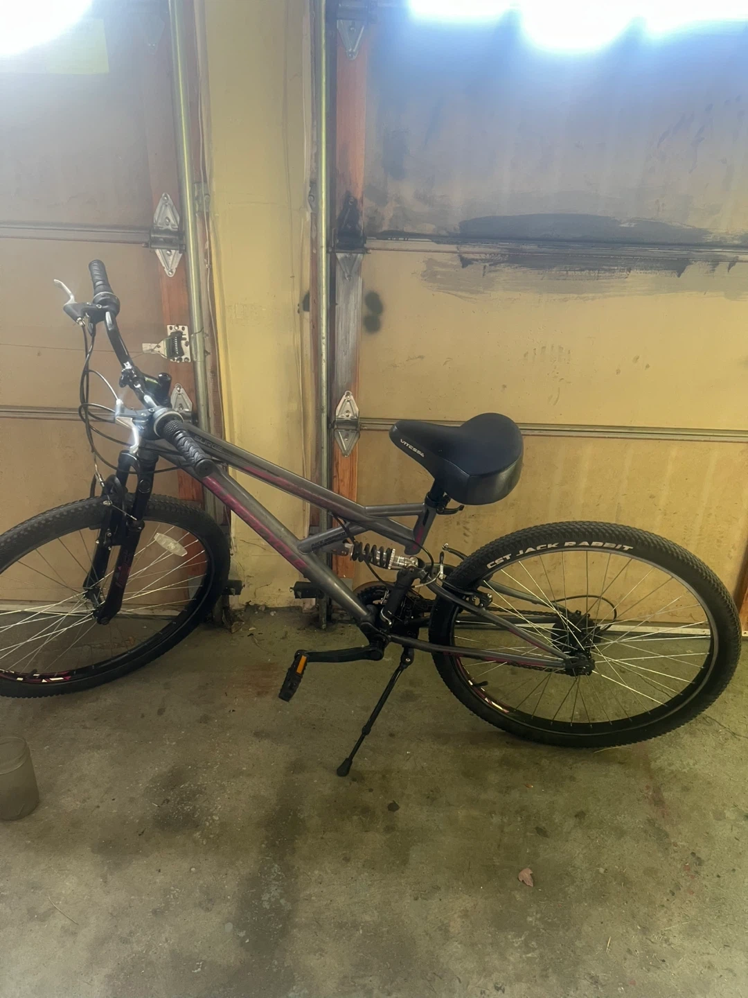 2927.5 dual shock Supercycle Surge mountain bike. Brakes, gears, tires, derailleurs all in good condition It's a great bike for getting around town or hitting some trails!