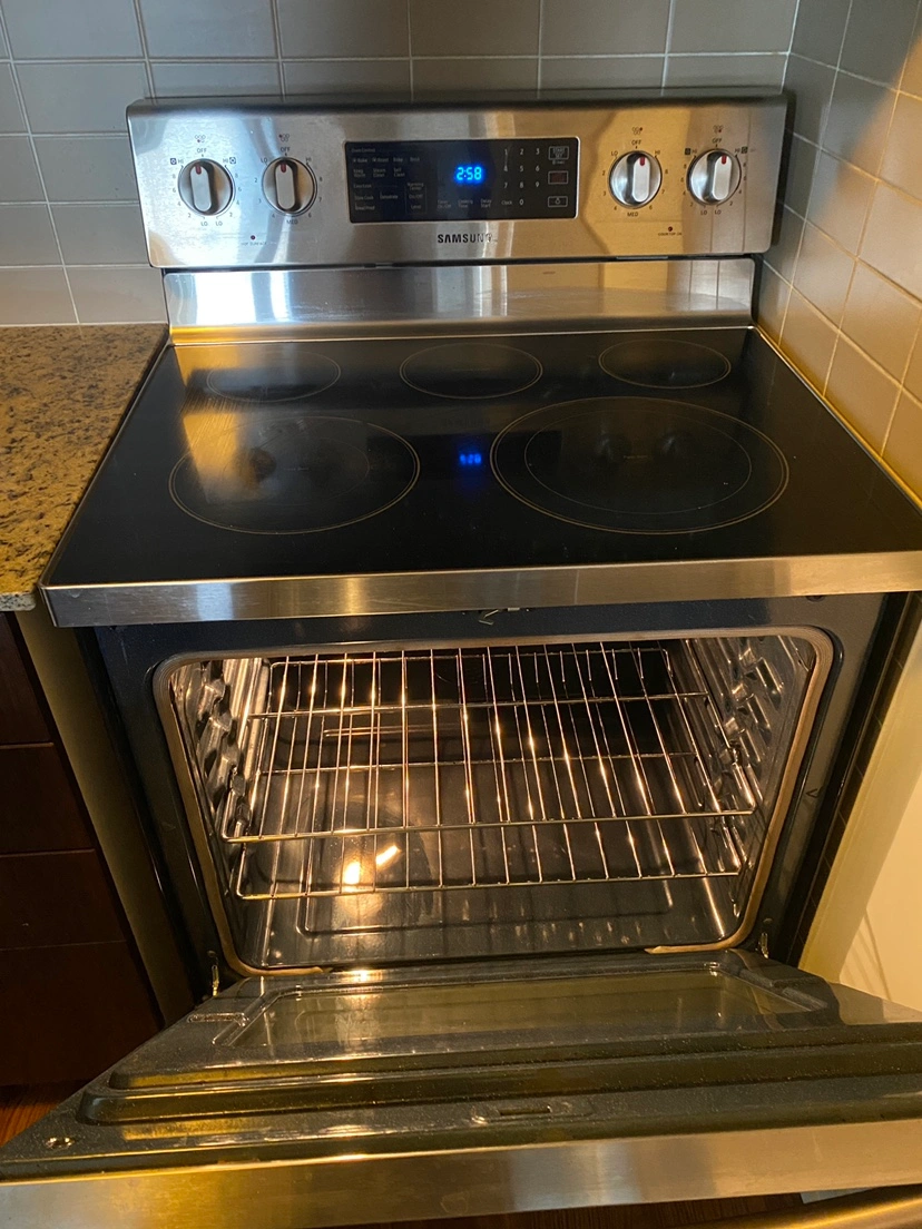 Samsung electric range with warming centre. Sparingly used, minor scratches. Moving out sale. Need to sell asap
