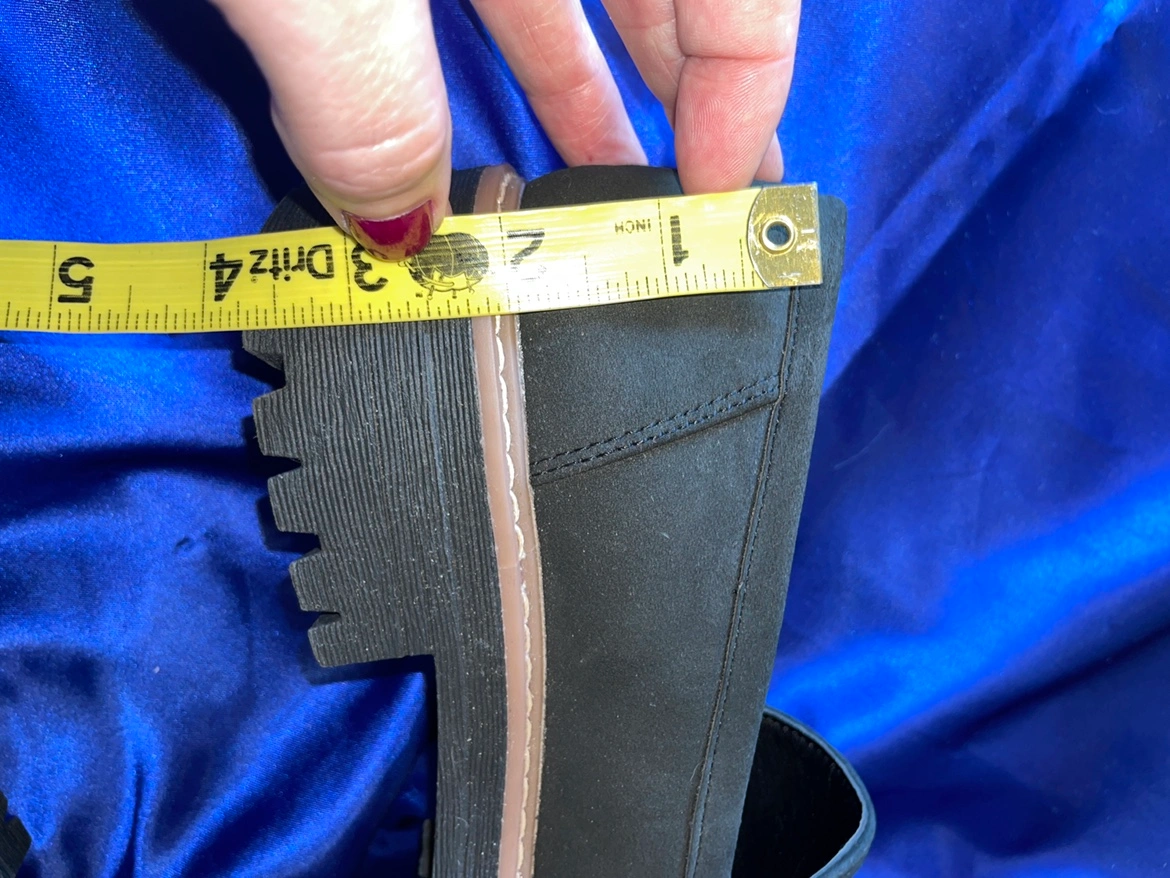 The heel height is almost 2 inches. They’re very cushy to walk on.