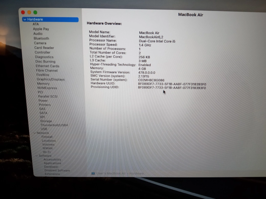 MacBook Air 13-inch, Early 2014, comes with 4 GB of RAM and a 1.4 GHz Dual-Core Intel Core i5 processor. The laptop is running macOS Big Sur.