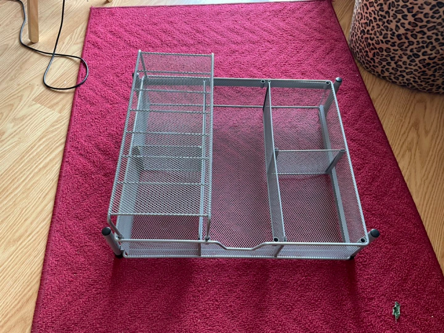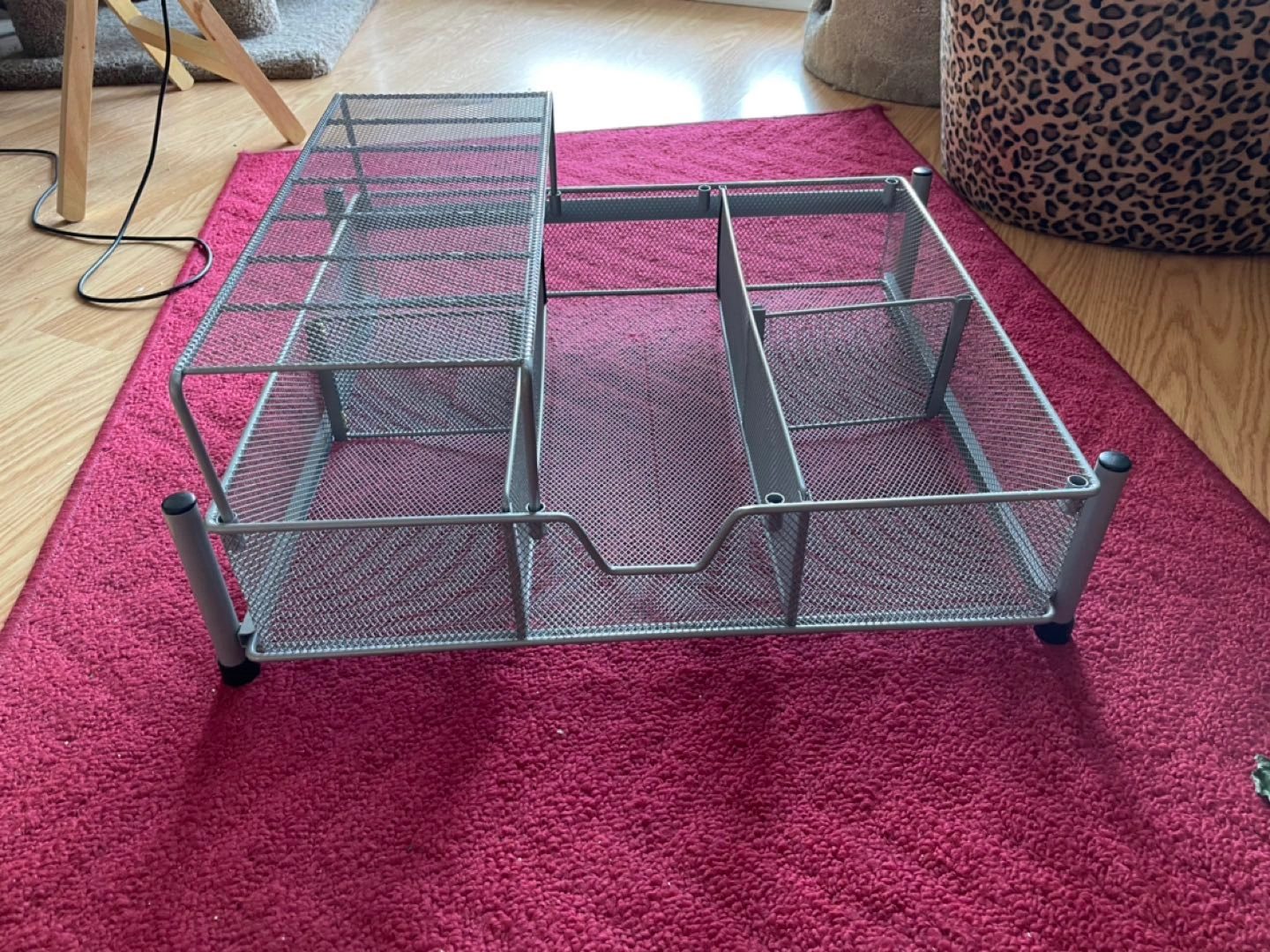 Metal storage drawer. Excellent condition. Drawer pulls out for easy access. The riser can be put in the center or on either side. Measures 19.5 inches wide 16.5 inches long and to the top of moveable shelf 8.5 inches.
