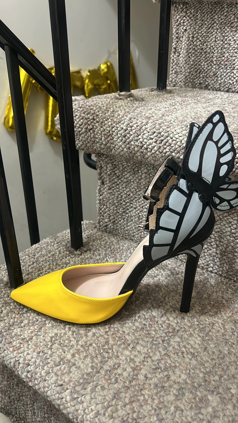 These heels are a statement piece with their yellow colour and 3D butterfly design. Super unique and cute. Only worn once.