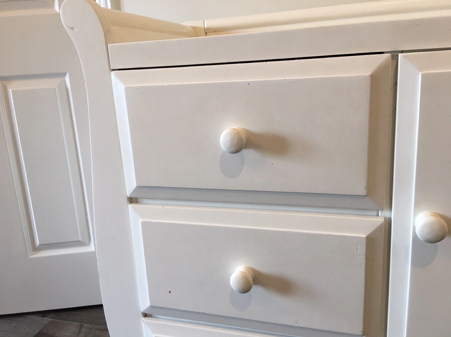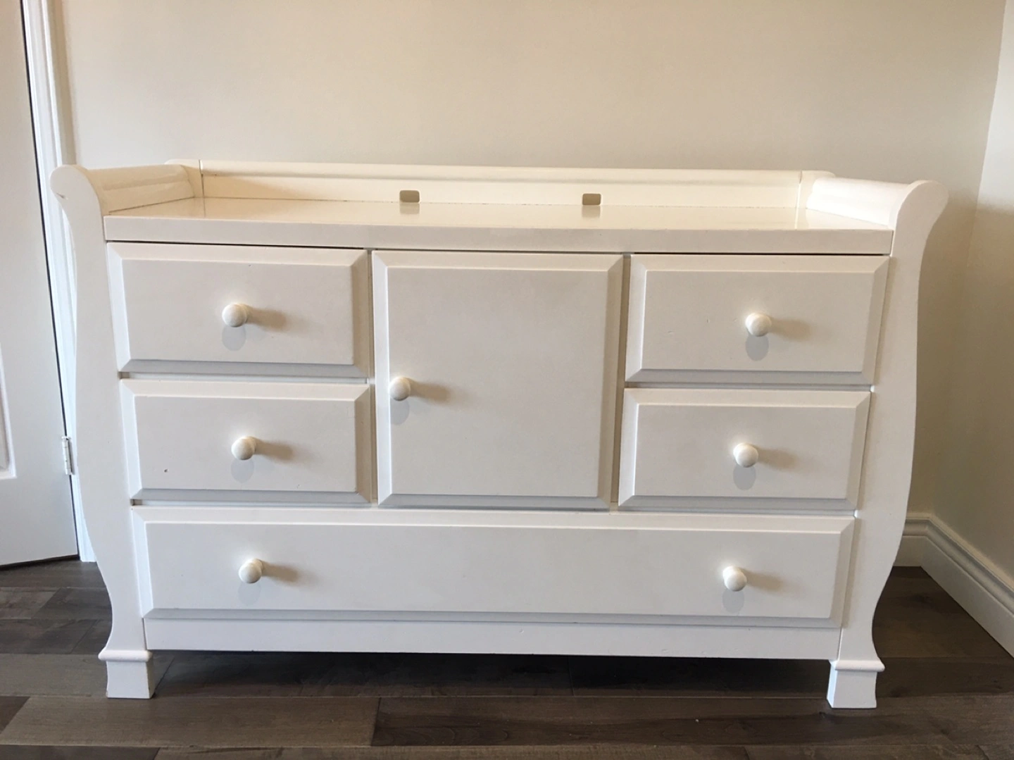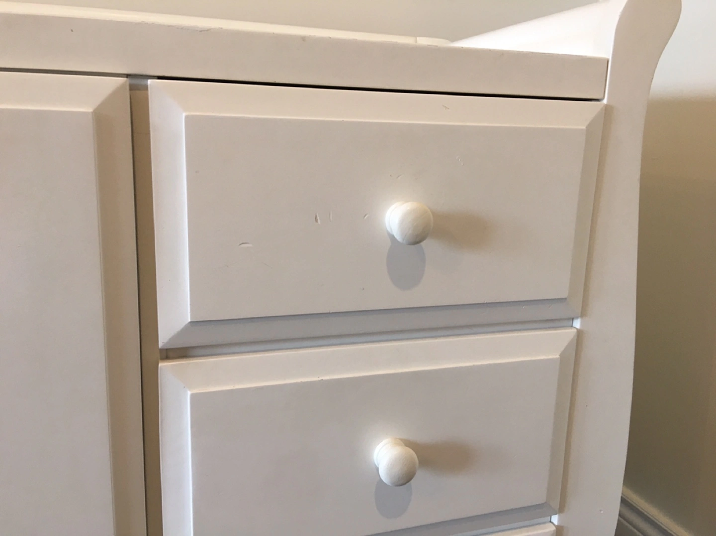 It is a beautiful change table. It has some minor scratches (see the pictures) but otherwise it is in great condition from a smoke-free, pet-free house.
