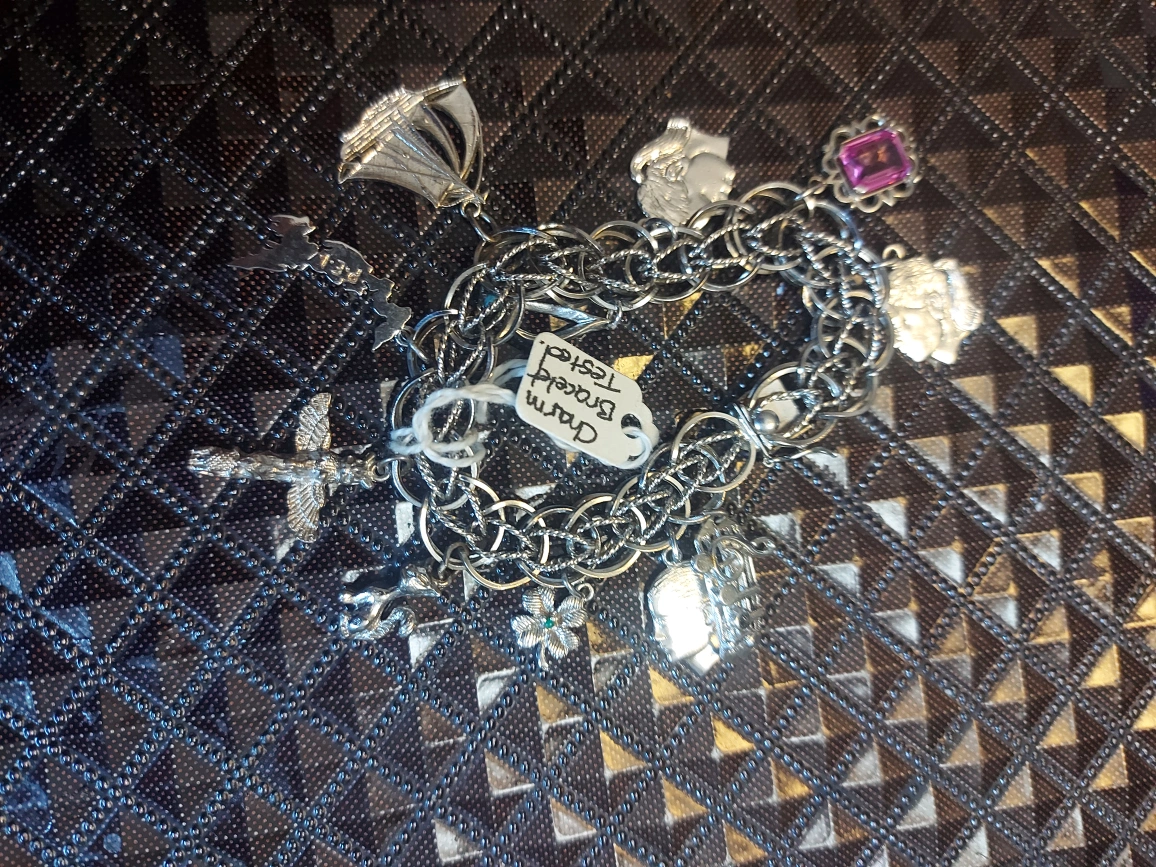 This is a charm bracelet with many different charms. It comes with a few extra charms that are not on the bracelet in the photo.