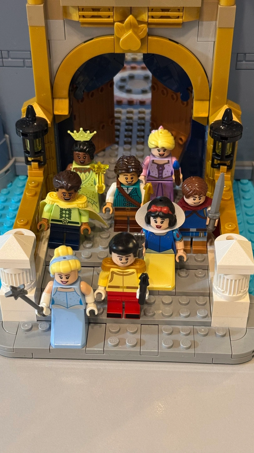 This premium, detailed LEGO set includes 8 minifigures of well-known characters from beloved Disney films - Disney's Cinderella, Prince Charming, Snow White, Prince Florian, Princess Tiana, Prince Naveen, Rapunzel and Flynn Ryder.