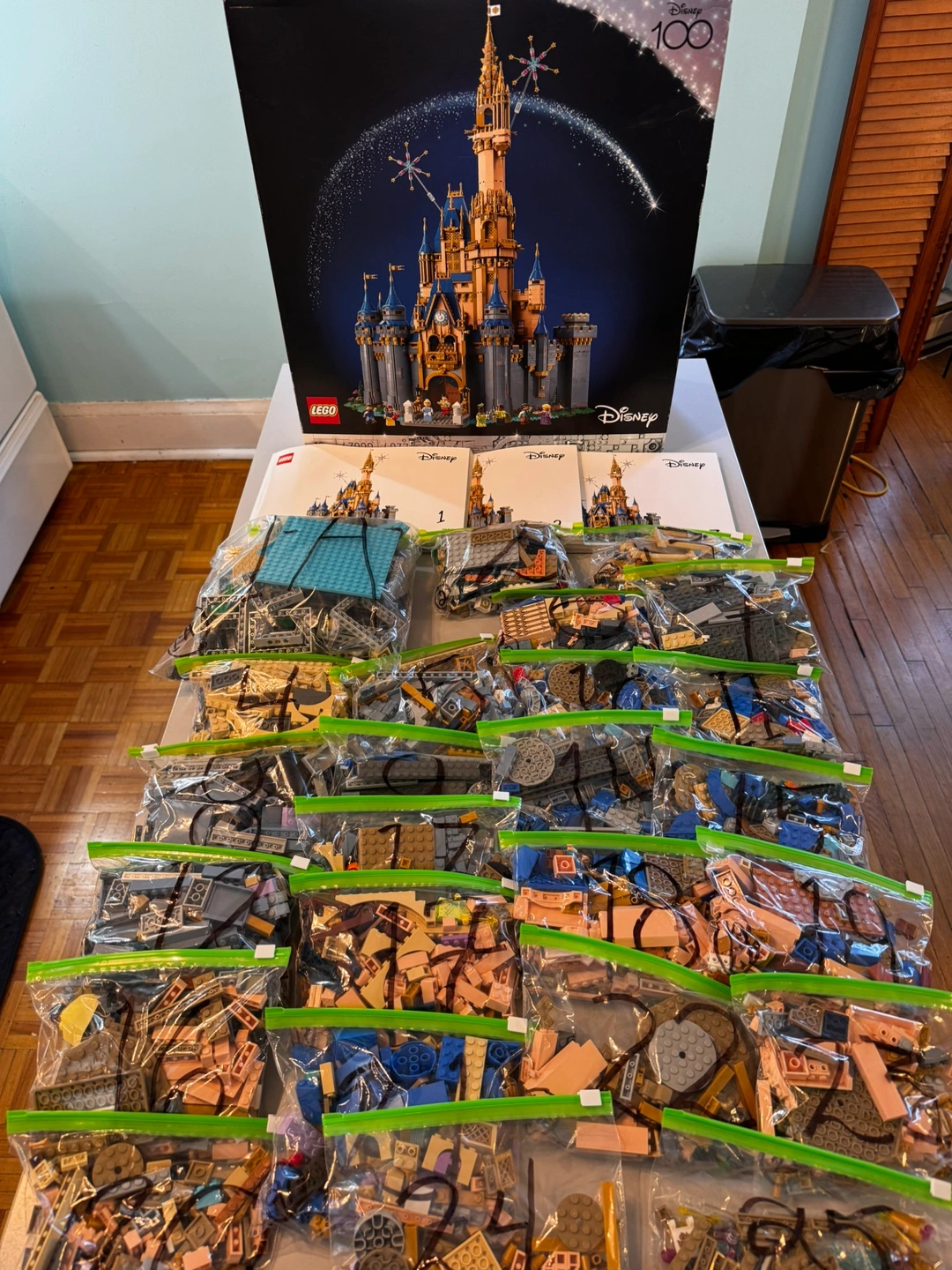 The set is 4837 pieces and I will guarantee that each brick is accounted for. After building the castle (once) I reverse-built the set using the step-by-step instruction book in reverse and ensured that each page had the correct number of bricks going back into the bag. Box included!