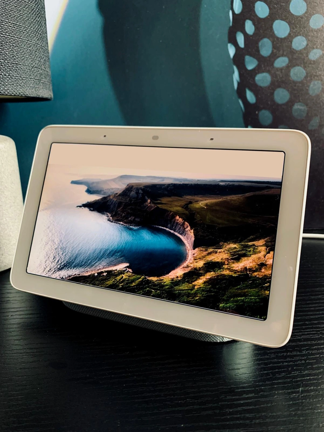 • Designed to fit naturally in any room at home. Ambient EQ Hub adjusts to match the colours and lighting in its environment. So photos on Hub seamlessly blend in with your home.