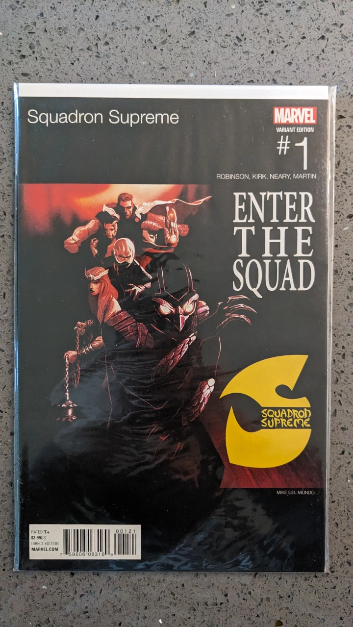 751Squadron Supreme (2015) Issue #1 Cover 1D Hip Hop Variant (Wu-Tang) Marvel Comics Comic Book "Hip Hop Variant Cover by Mike Del Mundo. Written by James Robinson. Art by Leonard Kirk. They're each the sole survivor of a lost Earth and they'll do anything to protect this one, whether you like it or not. The Squadron Supreme -- comprising Hyperion (Avengers), Nighthawk (Supreme Power), Dr. Spectrum (the Great Society), Blur (DP7) and Power Princess -- are a team that doesn't ask permission or what the rules are. To them all that matters is the safety of Earth and if you stand in the way...that's your problem! Tell that to the Squadron's first target -- Namor, destroyer of Dr. Spectrum's homeworld, who will have to pay for his crimes...but at what cost to the people of Atlantis"