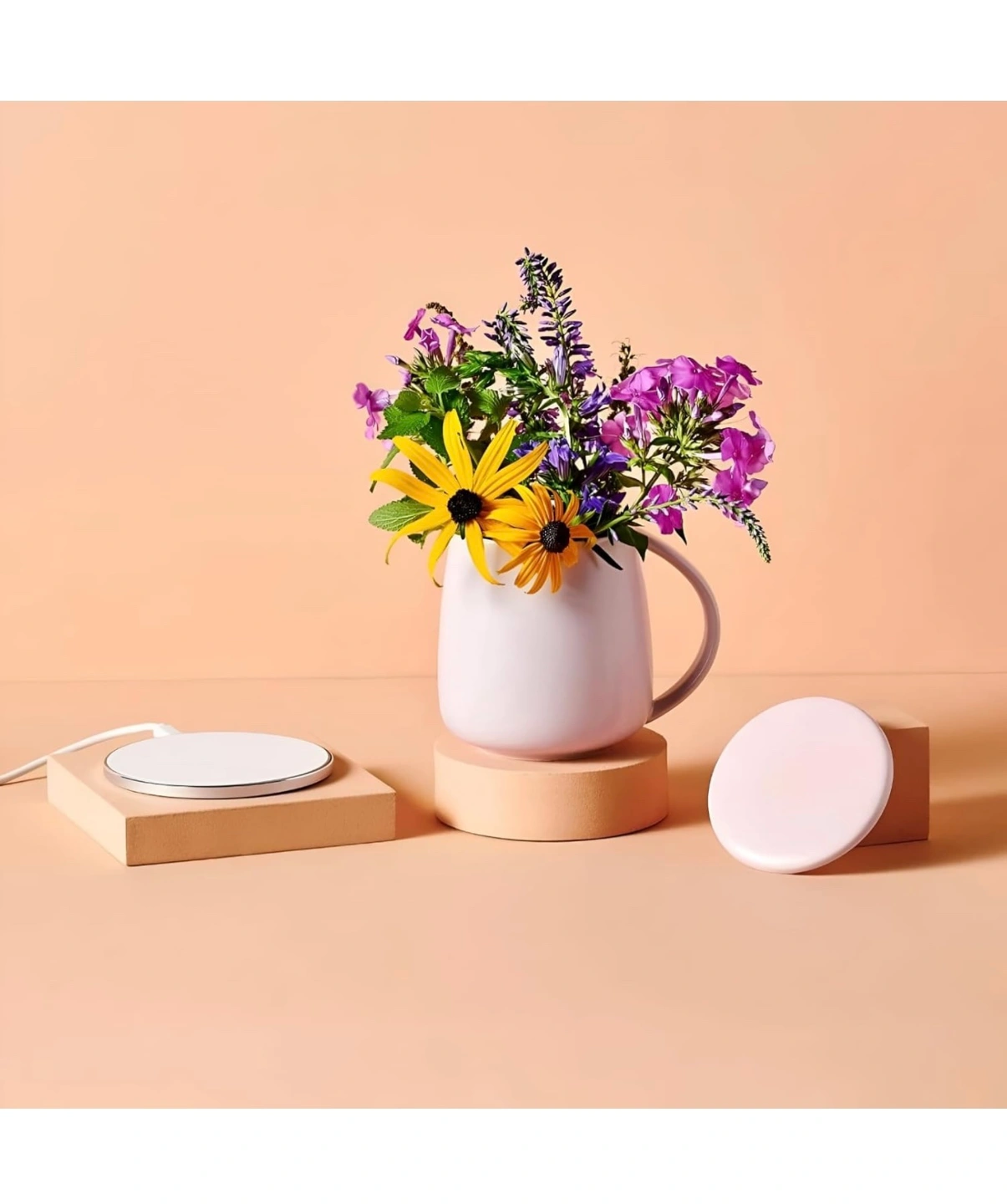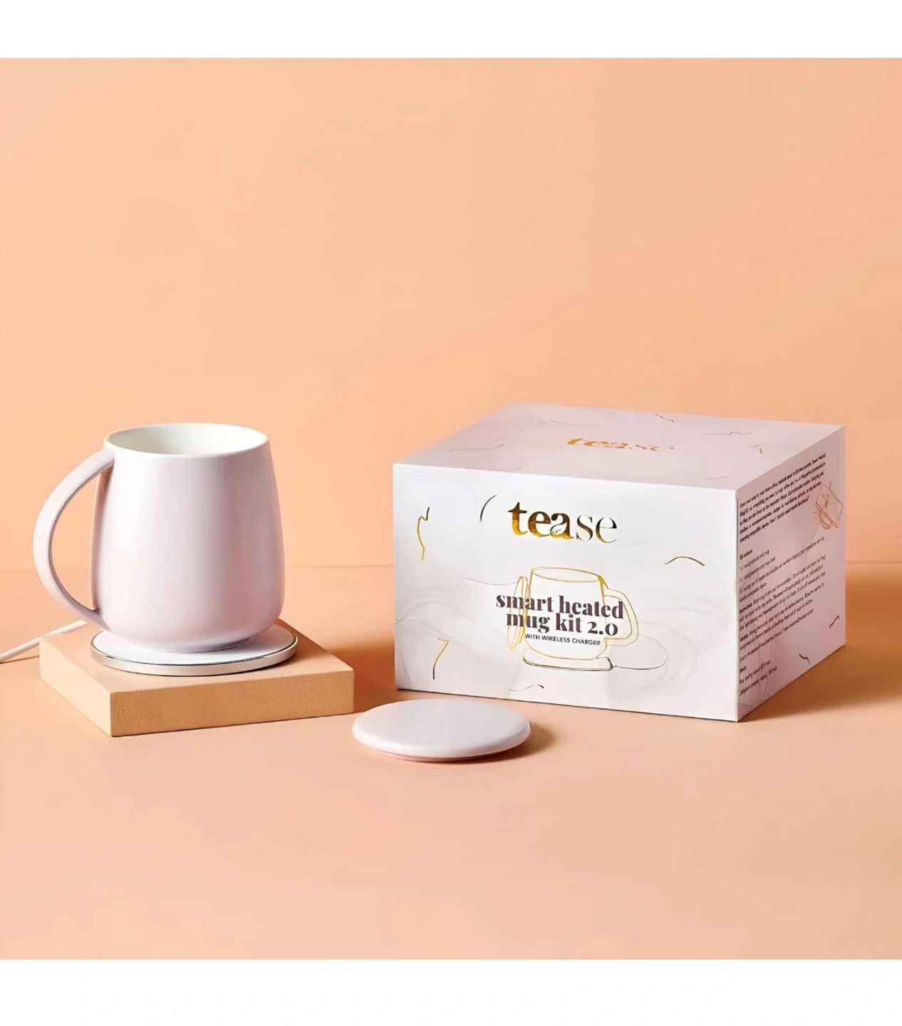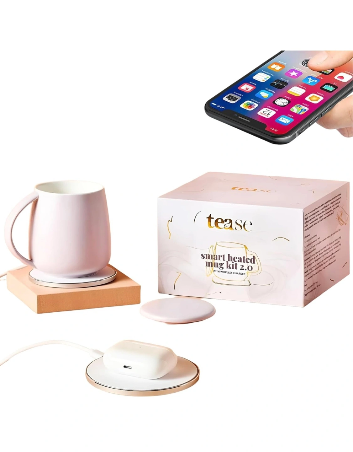 We levelled up our Smart Heated Mug Kit 2.0 for busy people who have high (temperature) standards and good taste while combining multi-functional, innovative design. When the heating coaster is not in use you can charge your wireless devices. The 2.0 Kit introduces a new era of beverage enjoyment with its cutting-edge temperature control feature. Set your preferred temperature for your coffee or tea, ensuring it stays at the perfect warmth throughout your sipping experience.