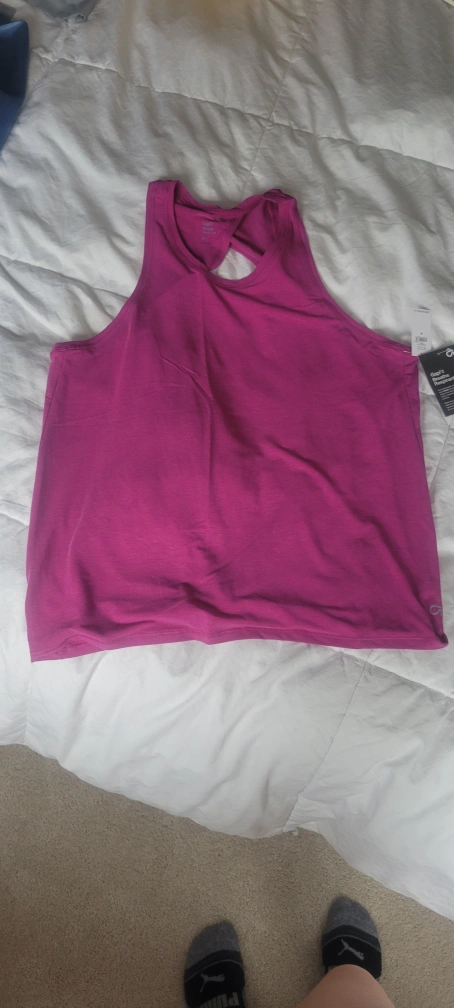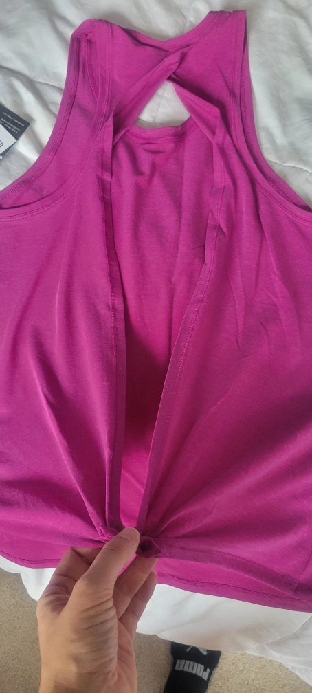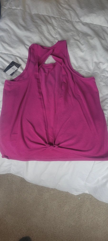 Open back workout tank top with a tie at the back. A great workout top or a casual top to wear out. Size Medium.