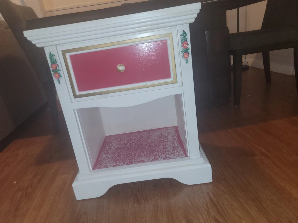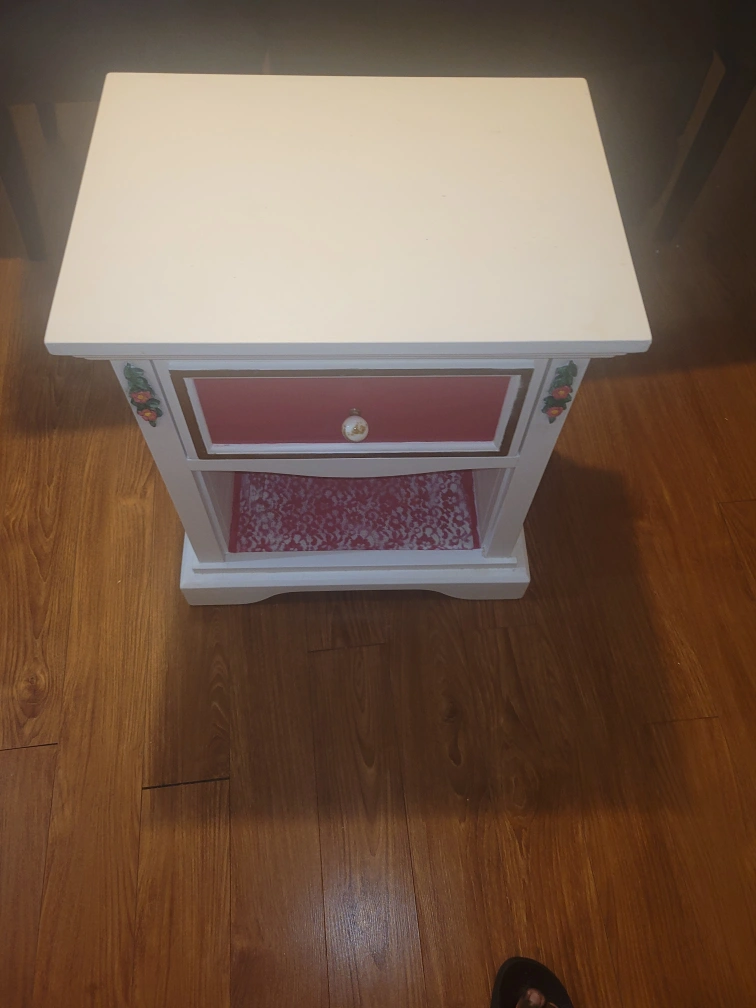 Buy & SellWhite Nightstand with DrawerWhite Nightstand with Drawer$19This is a medium-sized white nightstand with one drawer. It has a shelf and floral accents on the front.ConditionGoodWHERE TO MEETCheck LocationView MapSELLERRobertBeddington Heights332 reviews3 chats·4 favorites·175 viewsSEND CHAT TO SELLERHi Robert! I’m interested in your listing.Hi Robert! I’m interested in your listing.Get the Karrot app to chatSign In to chat