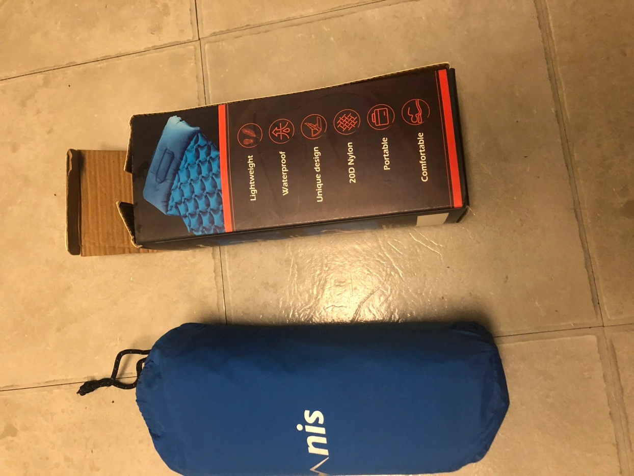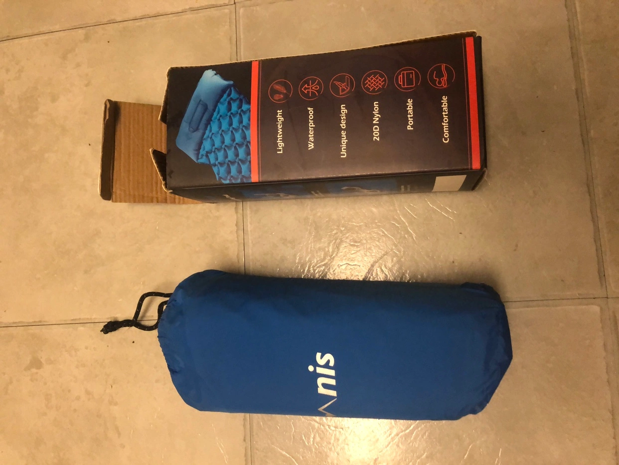 Camping, hiking or backpacking sleeping pad. This inflatable pad is compact and comfortable. It comes with a carry bag.