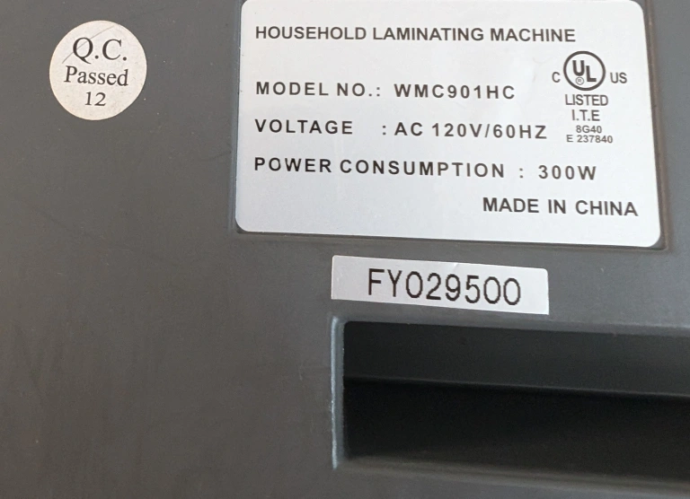 9 inch A4 Hot and Cold Household laminating machine with a power cord. Model #WMC0l901HC. Purchased at Staples. No box.In great condition! πποΈ