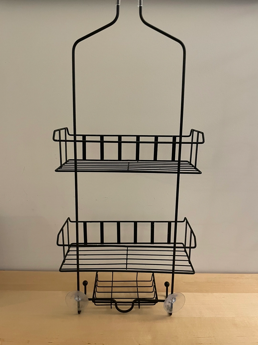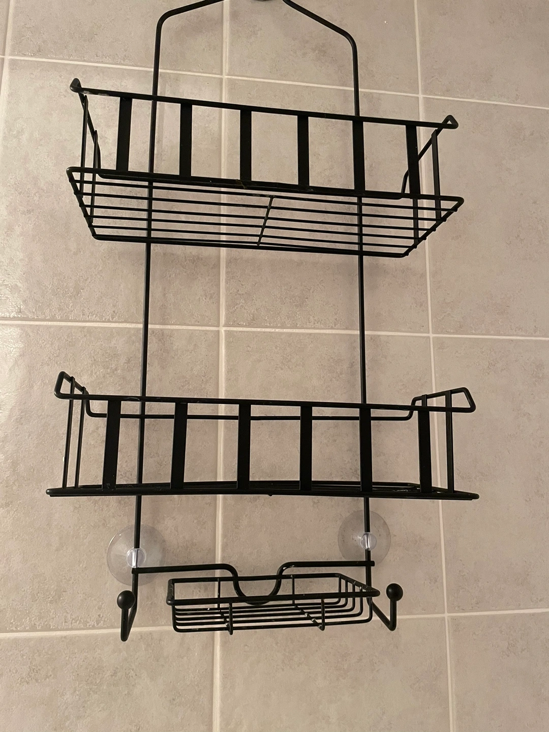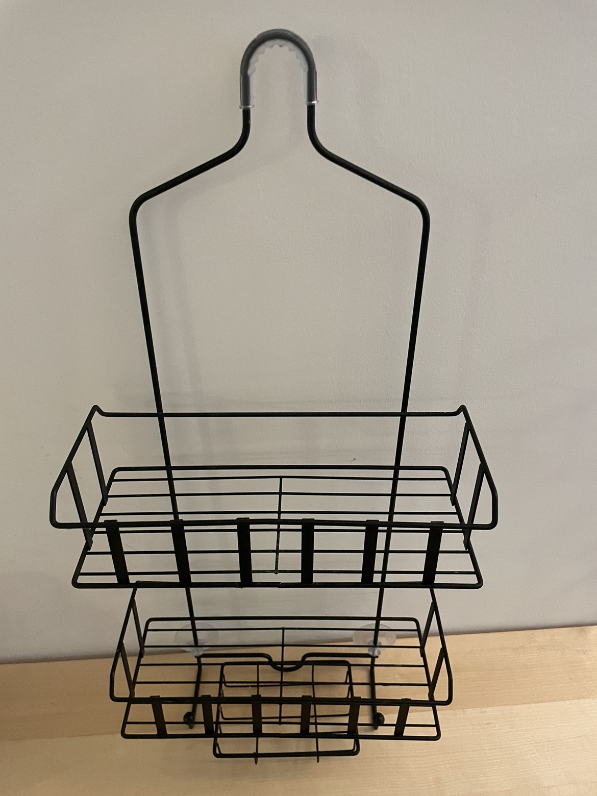 Two Suction cups to secure to shower wall and gel protector on the neck.