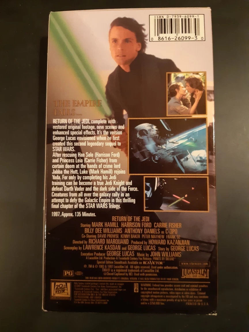 Special Edition VHS of the concluding film of the original trilogy, with restored original footage, new scenes and enhanced special effects.