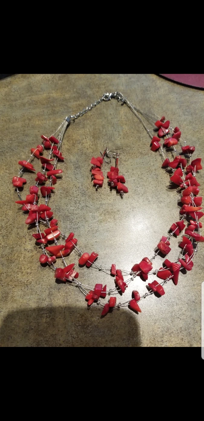 Beautiful matching pair of red stone necklace and earrings set.