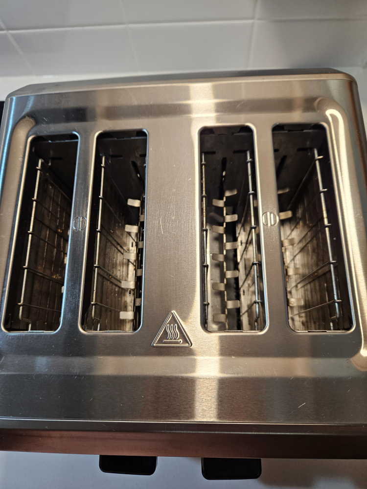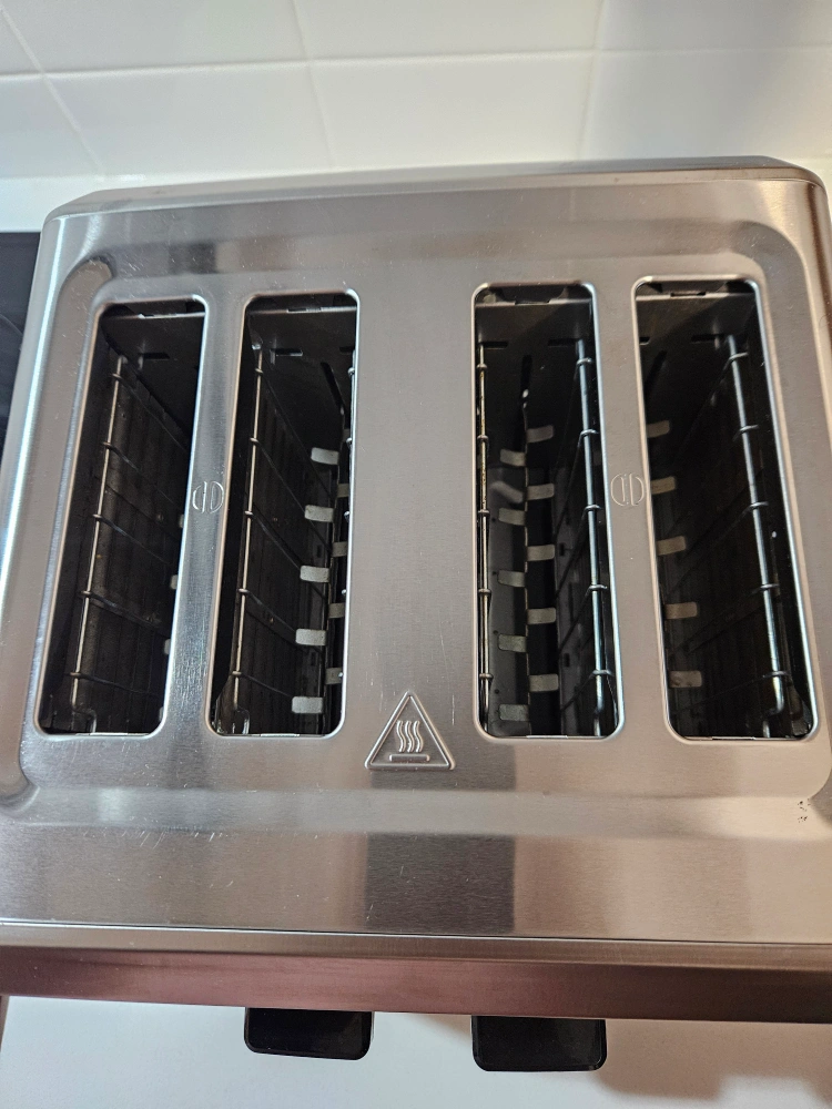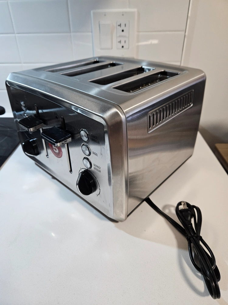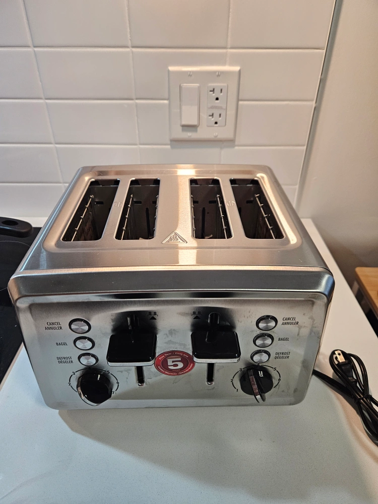 This is a Hamilton Beach 4 Slice Extra Wide Slot Stainless Steel Toaster. Barely used. New similar one on amazon selling for almost 82 (including taxes) Hamilton Beach Digital 4 Slice Extra Wide Slot Stainless Steel Toaster with Bagel & Defrost Settings, Toast Boost, Slide-Out Crumb Tray, Auto-Shutoff and Cancel Button (24796) https://a.co/d/jgzcOh7