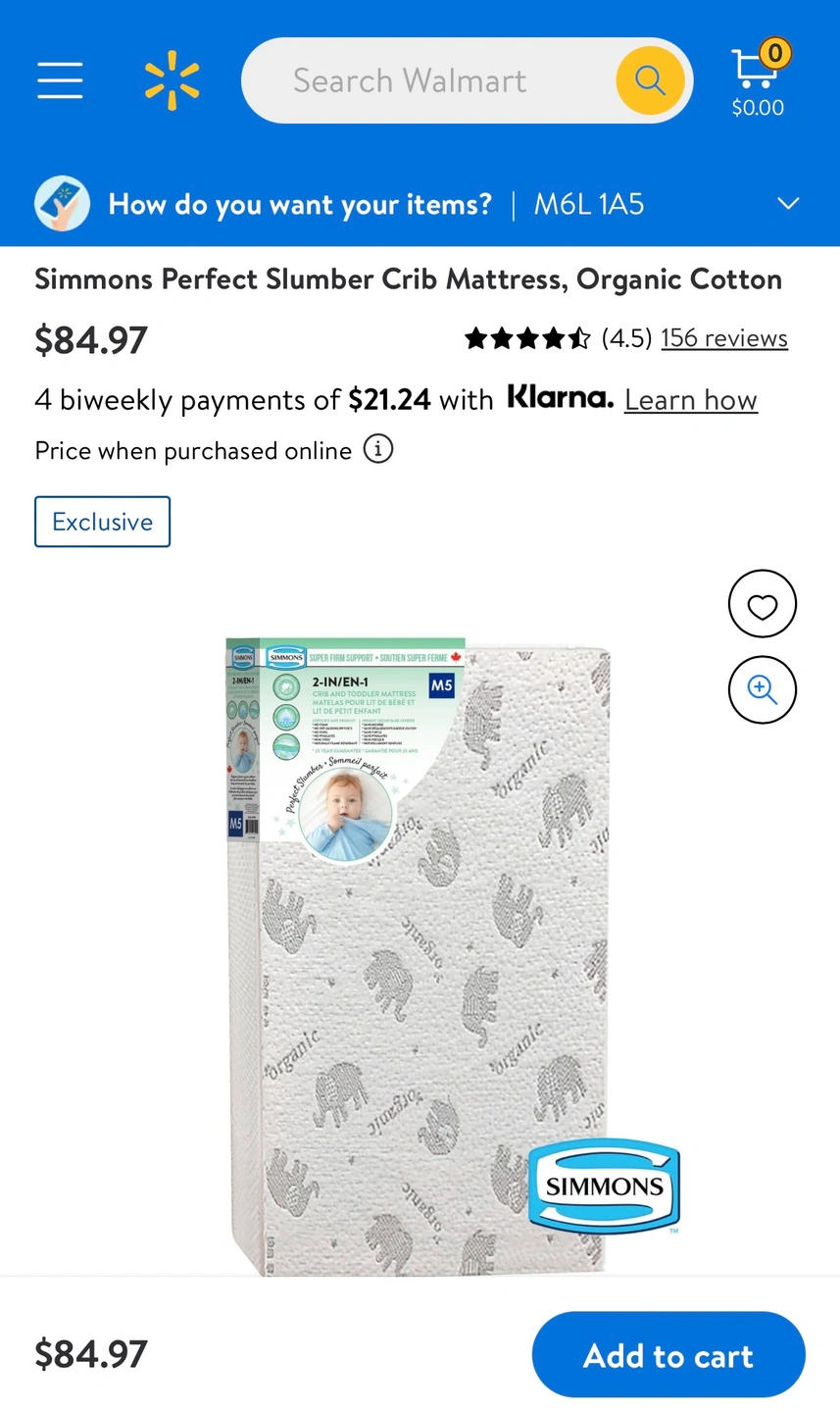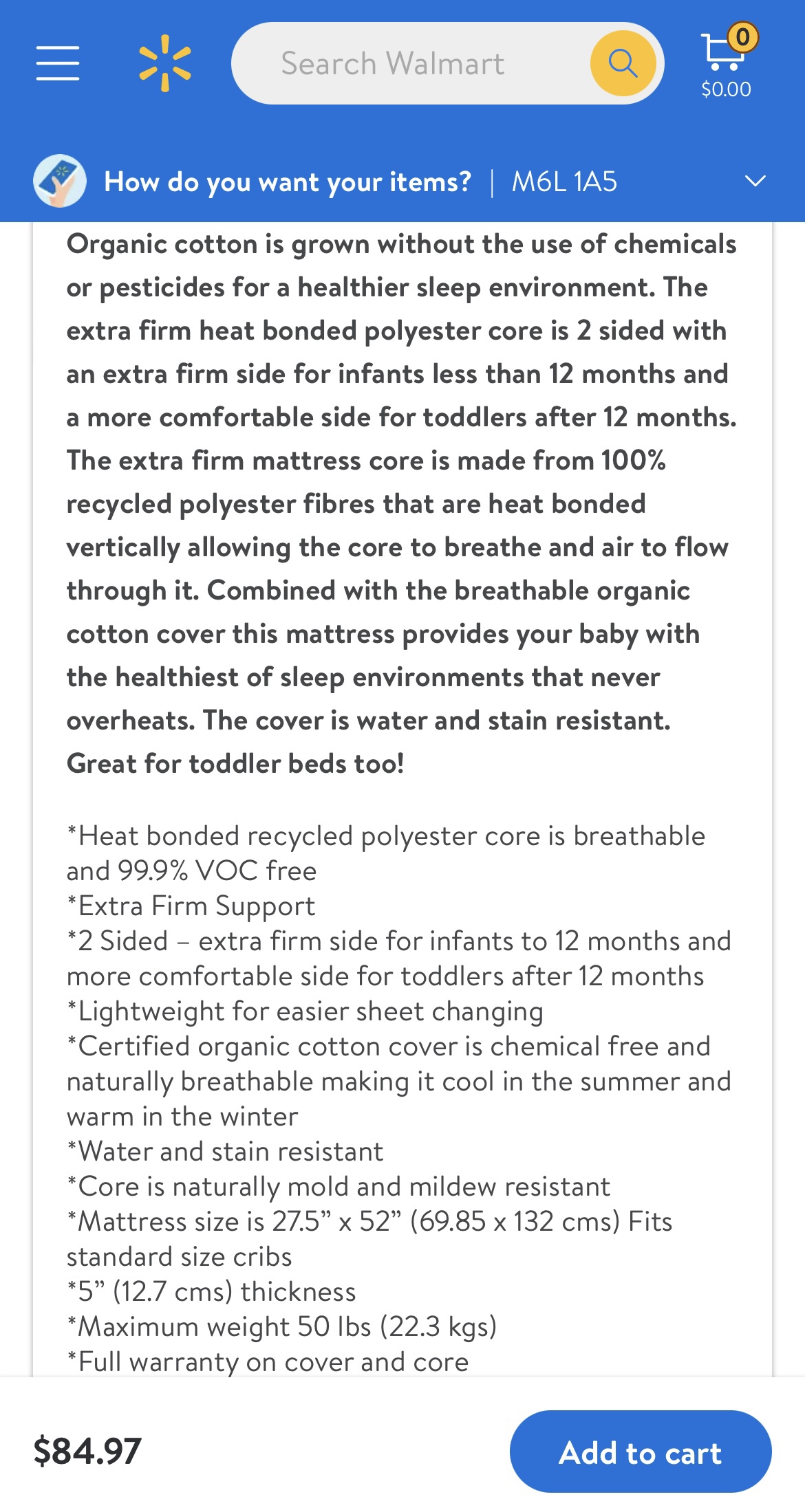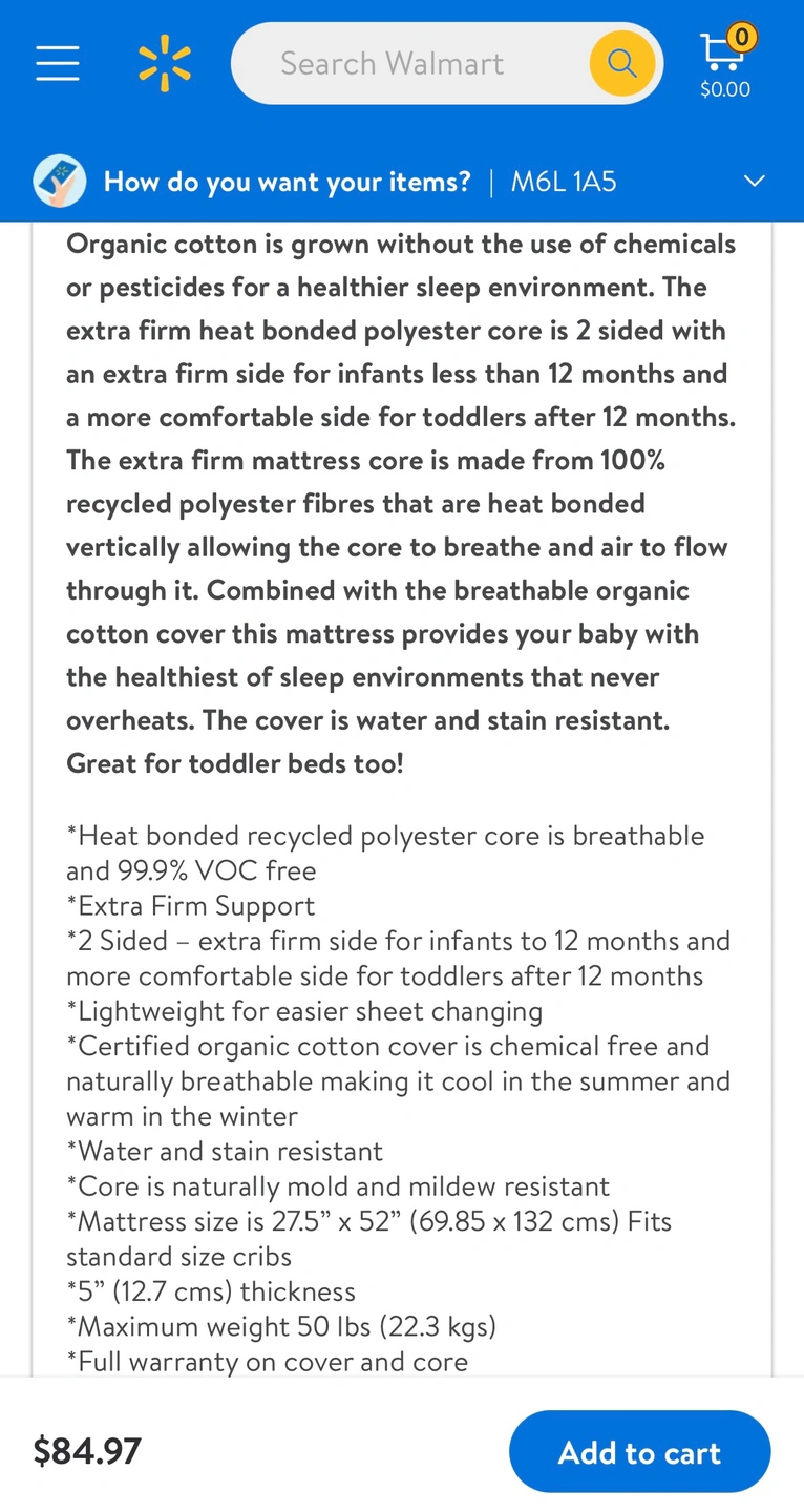 Organic cotton crib mattress, two sided, for infants to toddlers.