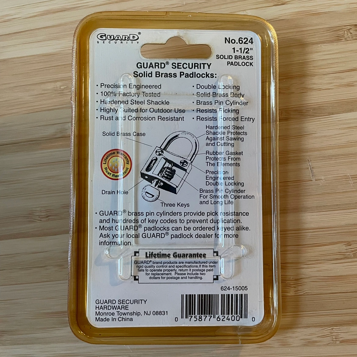 Brand new Guard Security 624 Solid Brass Padlocks With 1-1/2" Standard Shackle 1 Lock. Comes with 3 keys. $3 each. I have 2 left. For pick up in the Palisades Park, NJ area.