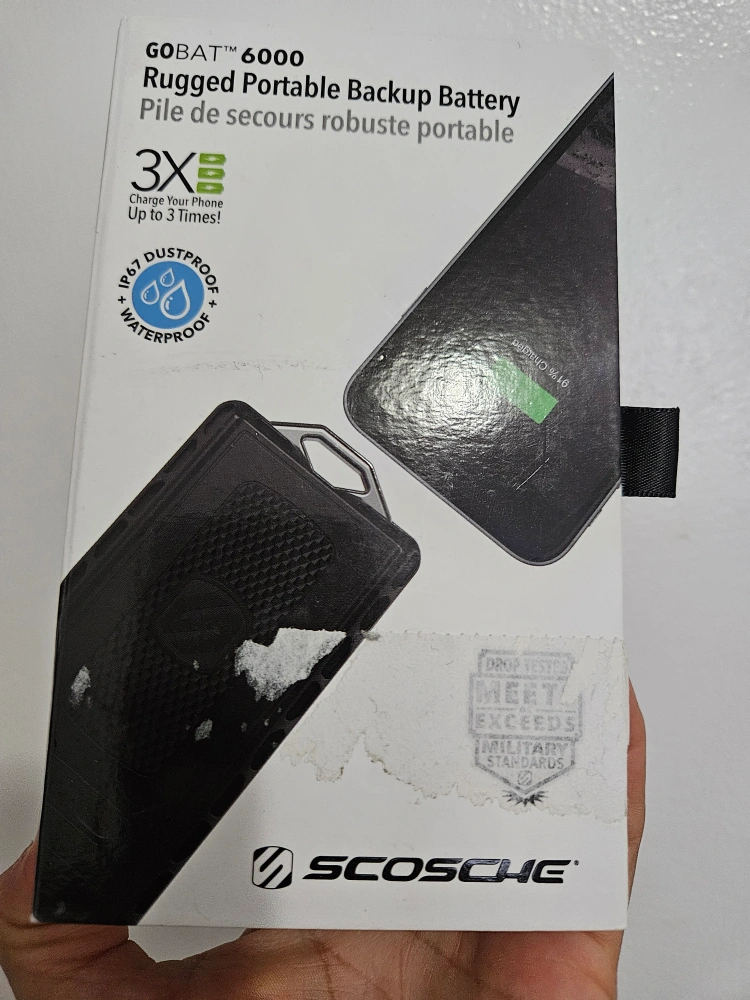 Scosche GoBat 6000 Rugged Portable Backup Battery, charges your phone up to 3 times. It is waterproof, dustproof and shockproof.