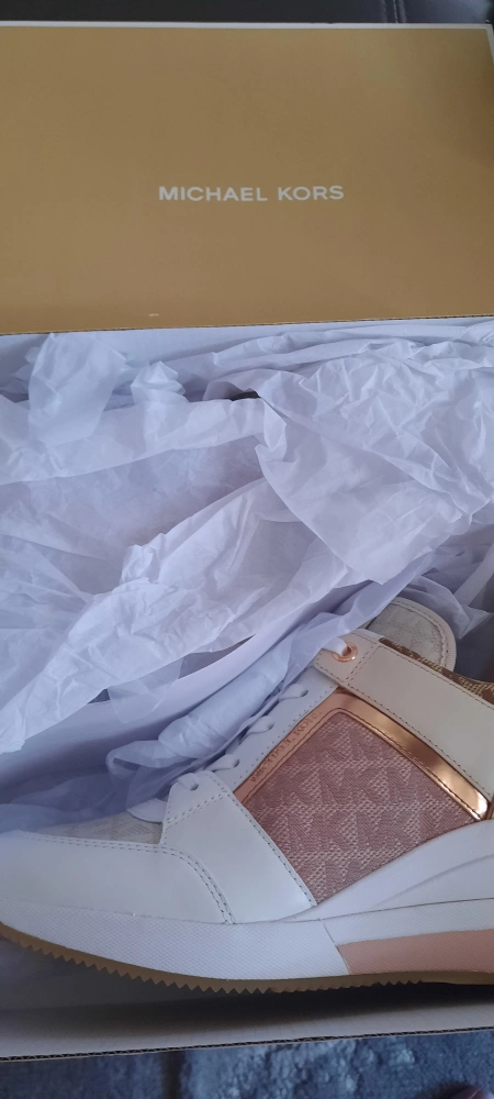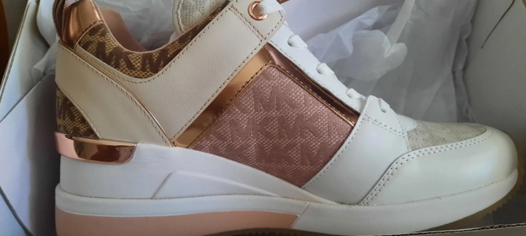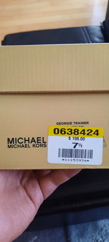Bought these for my wife at the MK outlet store but they dont fit her. She needs an 8 they are Women's size 7 1/2 Michael Kors Georgie trainers in white and blush. The shoes are in the original box. Retail on MKs website for $120+ my loss https://www.michaelkors.com/ca/en/georgie-color-block-leather-and-logo-jacquard-trainer/43T1GEFS1Y.html?color=0122&bvstate=pg:3/ct:r .