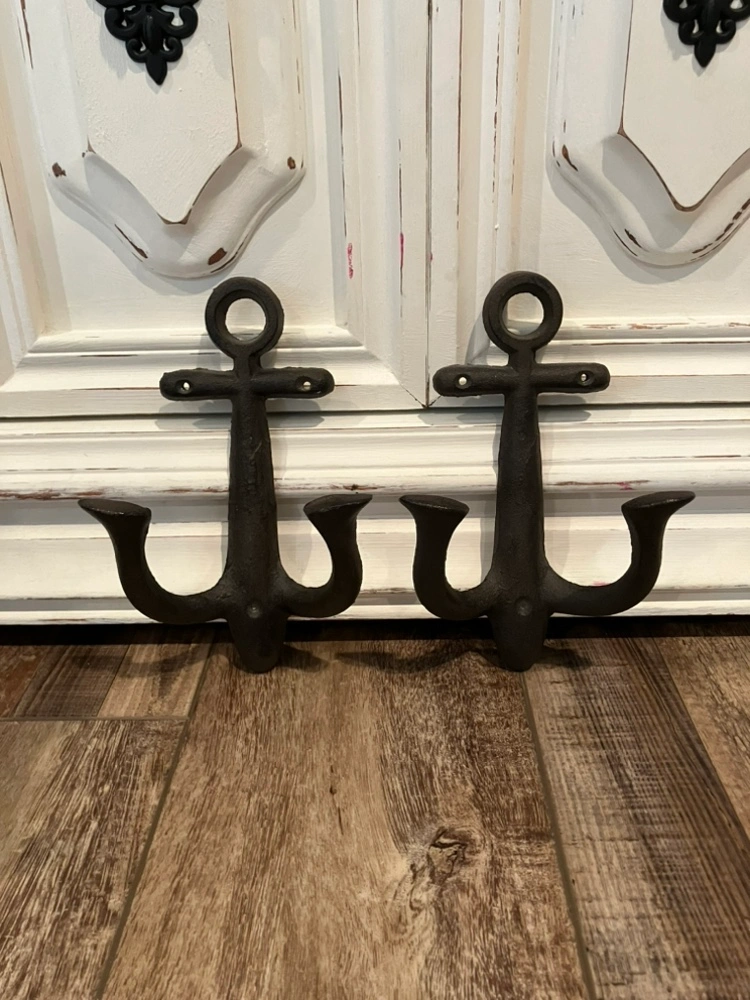 60Set of 2 Cast Iron Anchor Wall Hooks, Dark Brown, 8.5-Inch