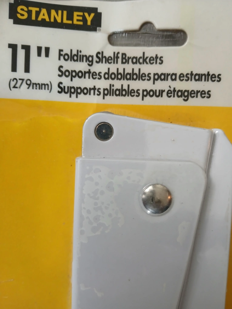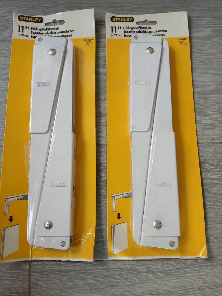✅️Two 11" horizontal, and 5" vertical Stanley folding shelf brackets. New in package.