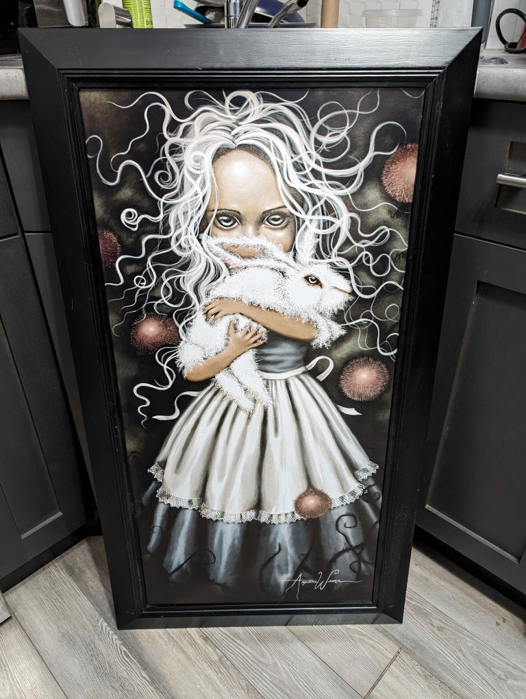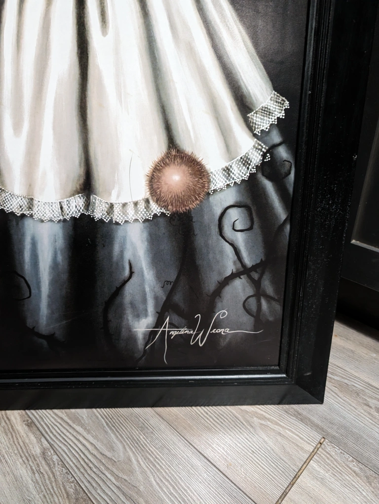 Canadian artist Angelina Wrona's very well known style. This print is often known as the Alice in Wonderland. Canvas quality print with black wooden frame.