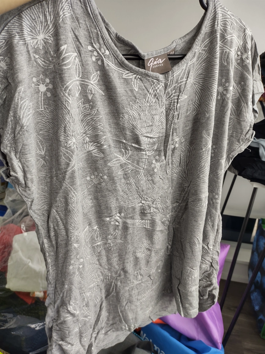 Lightly used Grey t-shirt with a beautiful floral pattern. Extremely soft & comfortable fabric