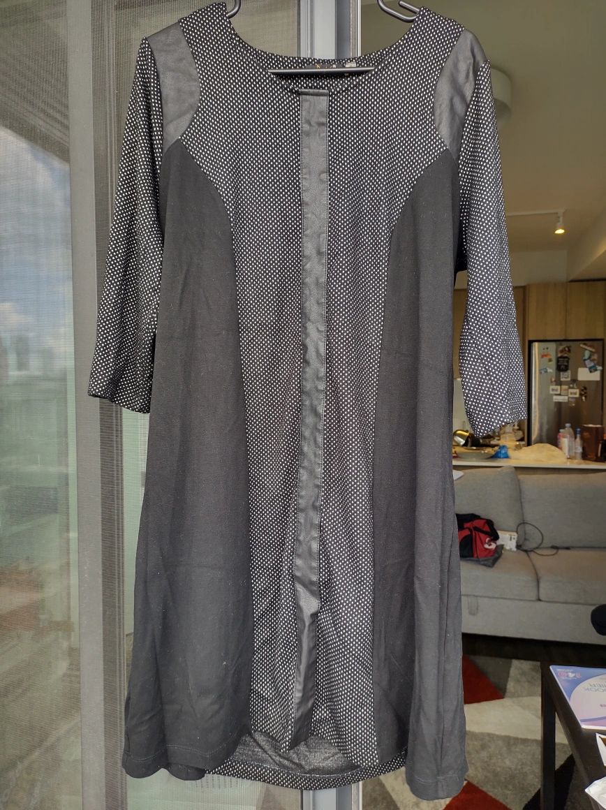 Lightly used black 3/4th sleeve dress with polka dots.