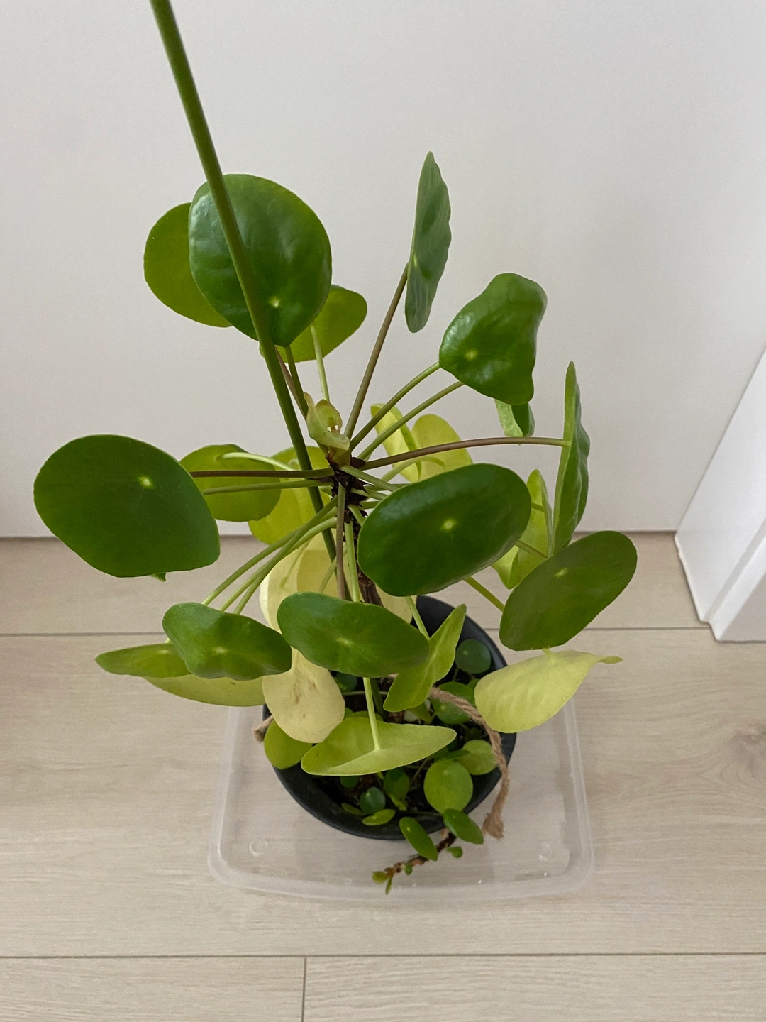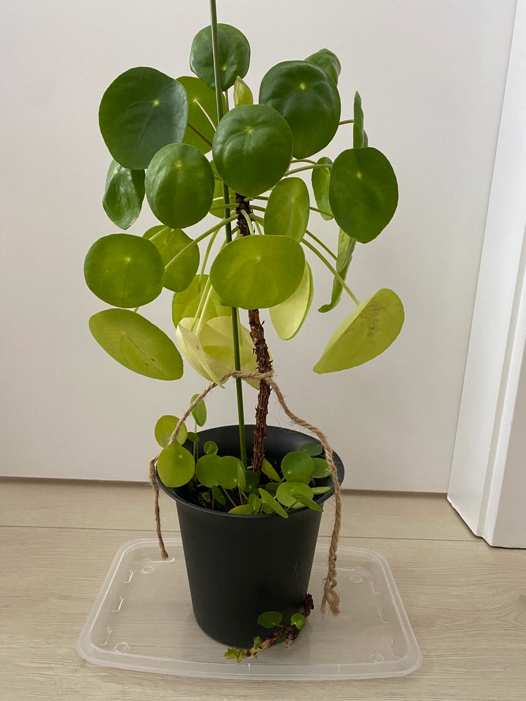This is a lovely and healthy Chinese Money Plant, ready to bring some life to your home. It is currently in a 6-inch pot and is approximately 18 inches tall. There are a few new babies sprouting at the base, ready to be potted and grown! Pick it up today!