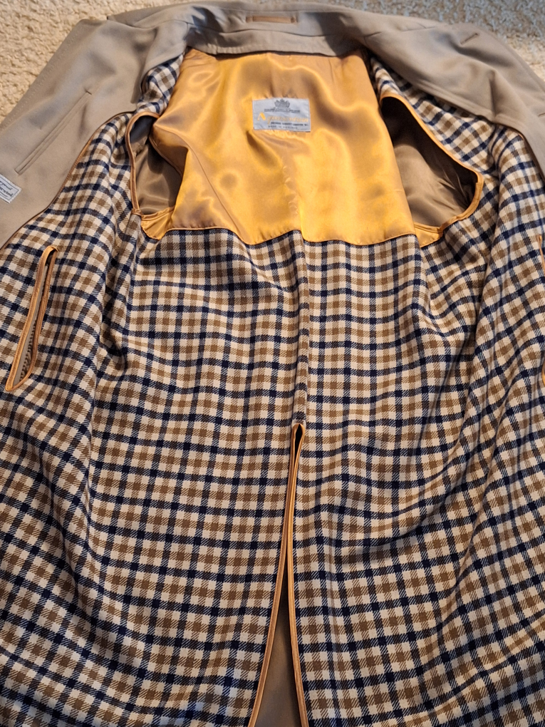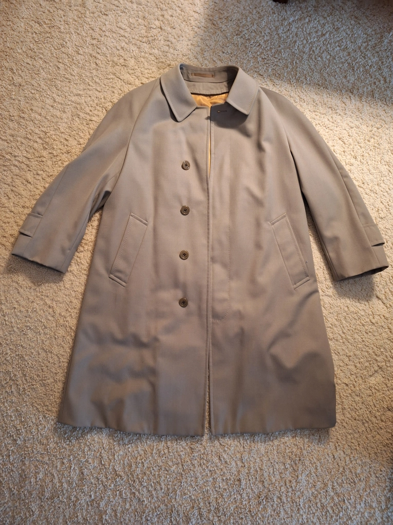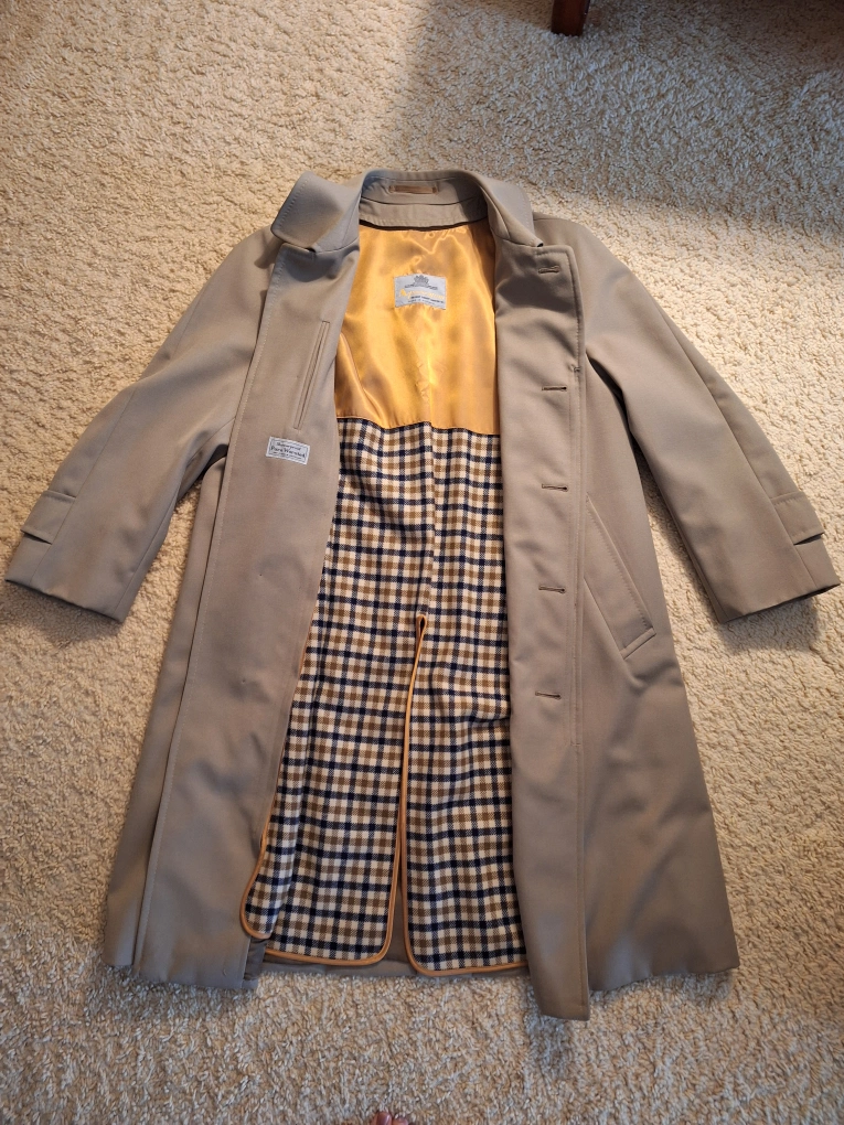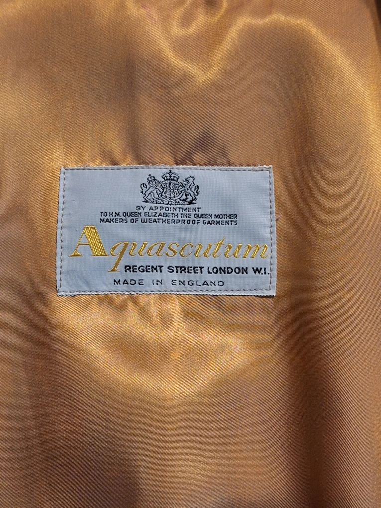 378Aquascutum Men Trench Coat with a plaid lining Excellent Condition Sizing is good for small/medium built man Chest 21 inch; Arm 21 inch; Shoulder 20 inch. The coat is made in England. cash only please, pick up at Fairview Mall TnT supermarket