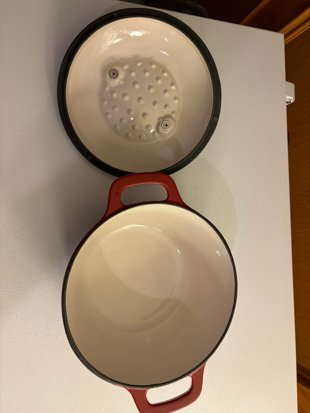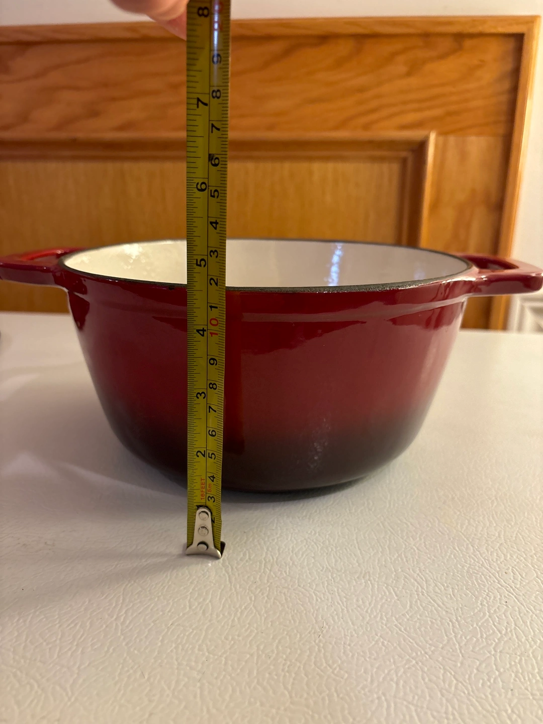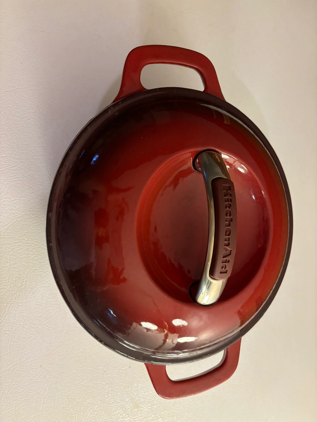Crafted with high-quality cast iron material and coated with enamel, this round Dutch oven is designed to last for years to come. Its vibrant red color adds a pop of style to any kitchen décor. Ideal for cooking enthusiasts, this KitchenAid Dutch oven is perfect for preparing stews, soups, and more.