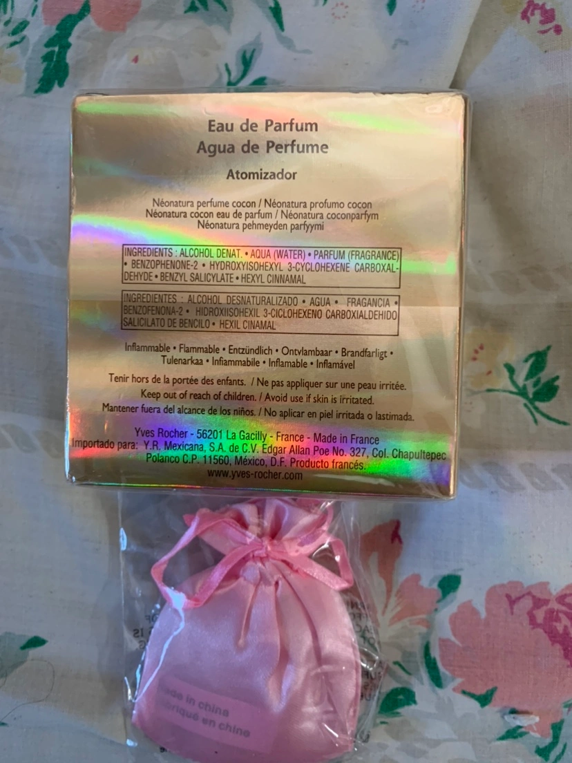Brand new! 50 ml bottle of Néonatura Eau de Parfum. Comes with a pink drawstring bag. Made in France. Imported by Yves Rocher.