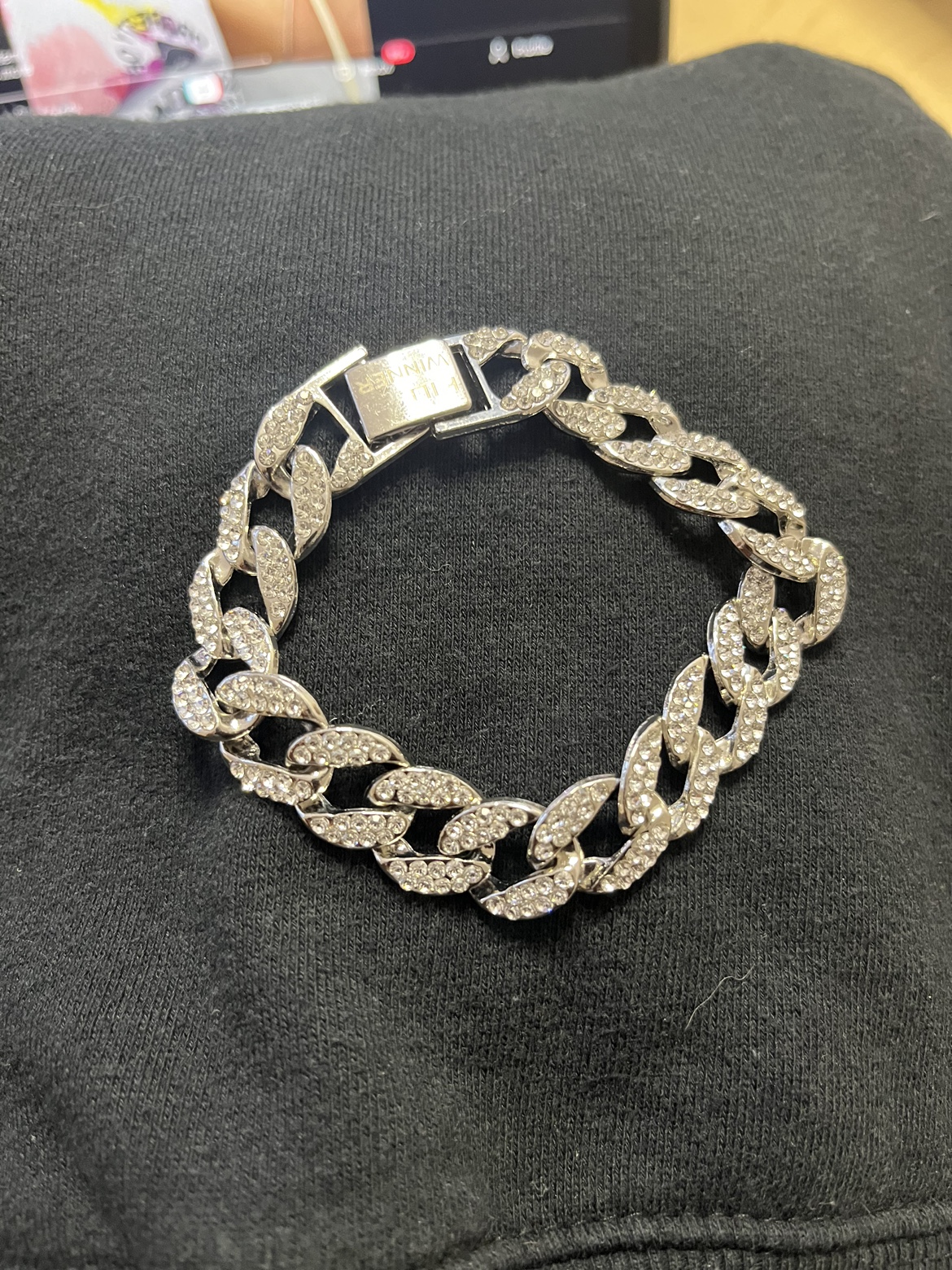 Silver Cuban Link Bracelet with Cubic Zirconia Stones. New in package. Giftable